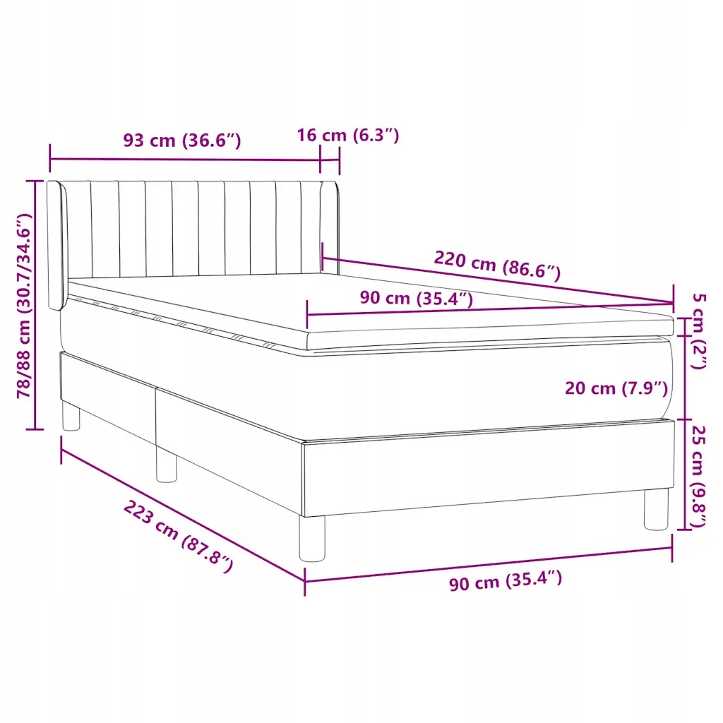 - Размеры: 90 х 220 х 20 см (Ш x Д x В)