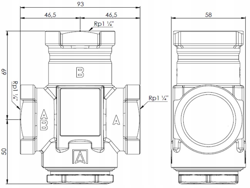 ТЕМПЕРАТУРНЫЙ КЛАПАН ДЛЯ ЗАЩИТЫ ВОЗВРАТА КОТЛА ATV 554 DN32 5/4" CAL 9 м³/ч 50°C