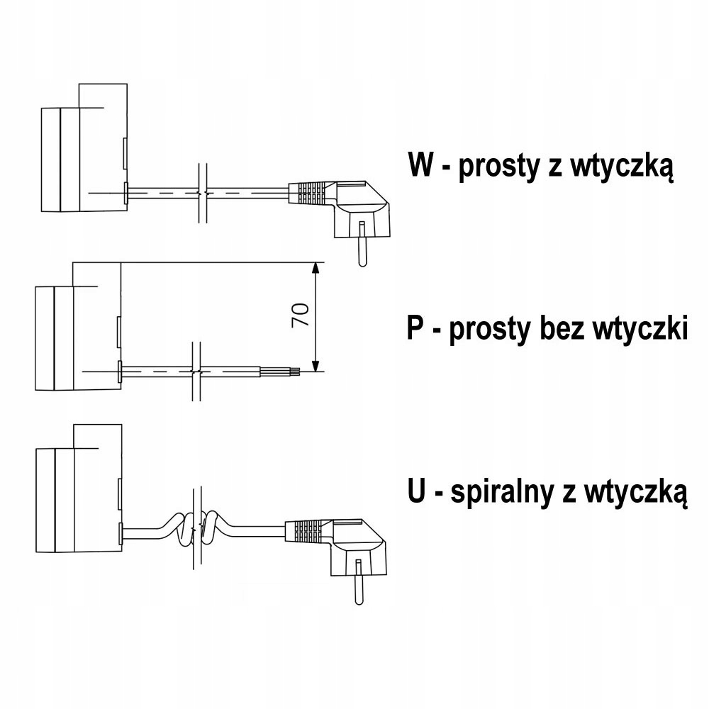 При оформлении заказа выберите тип кабеля питания: прямой с вилкой, прямой без вилки, спиральный с вилкой.