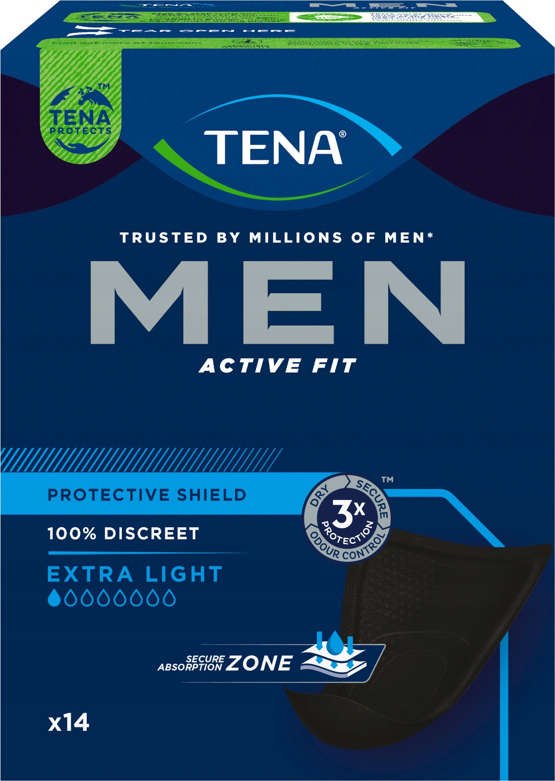 Мужские стельки TENA Men Active Fit Extra Light обеспечивают защиту от небольших протеканий, неприятных запахов и влаги. Разработанная черная вставка треугольной формы толщиной всего 3 мм обеспечивает тонкость и безопасность.