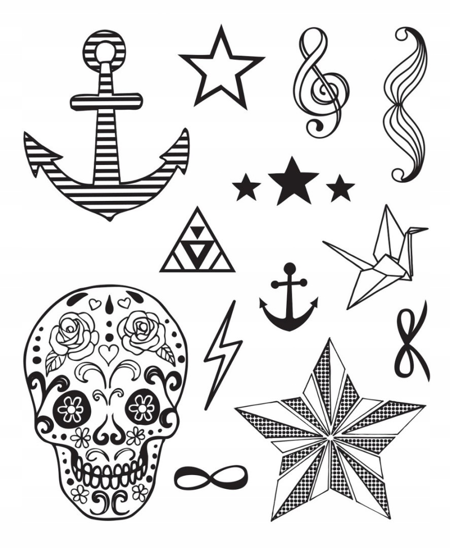 Набор из 13 резиновых штампов с ручками из пены. Кроме того, одна круглая губка и бутылка с черными чернилами кожи. Композиция чернил: изопропанол, Pix graca, этилцелоза, Ci77266, трибул ацетилоцитринат. Дерматологически протестированные, тушь, продуцируемая во Франции.