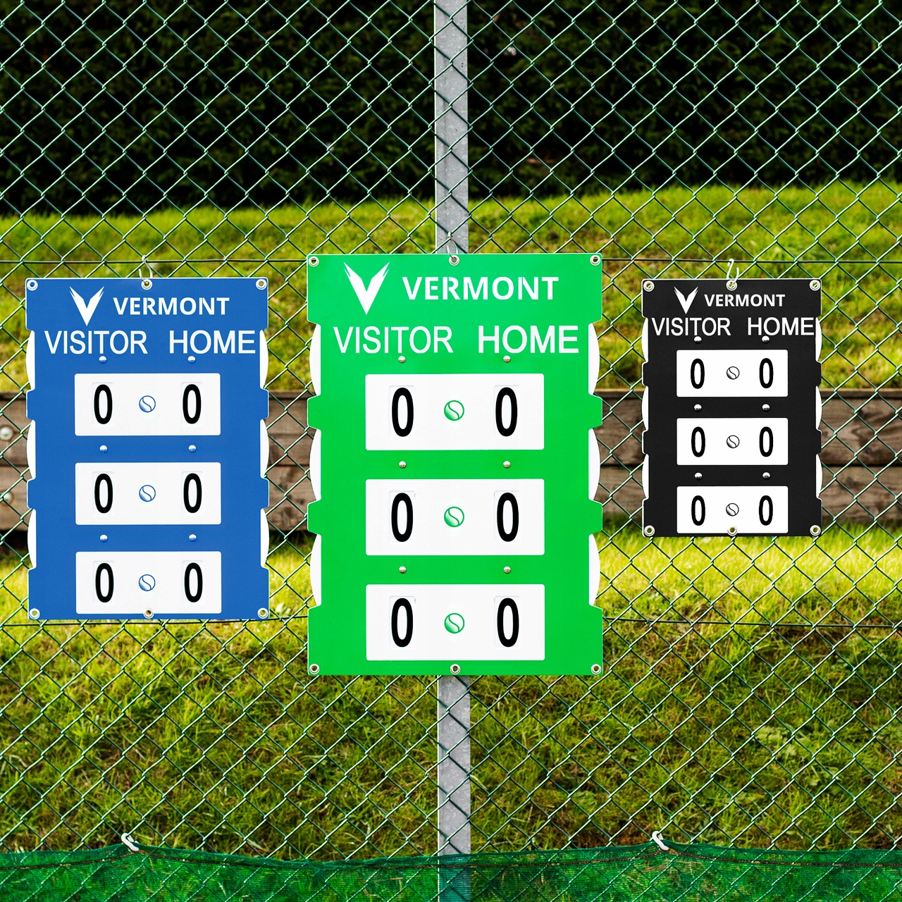 Благодаря 3 различным размерам и цветам вы получите идеальный щит для вашего теннисного корта. Маленькая версия идеально подходит для теннисных сеток, а большие можно легко повесить на заборы.