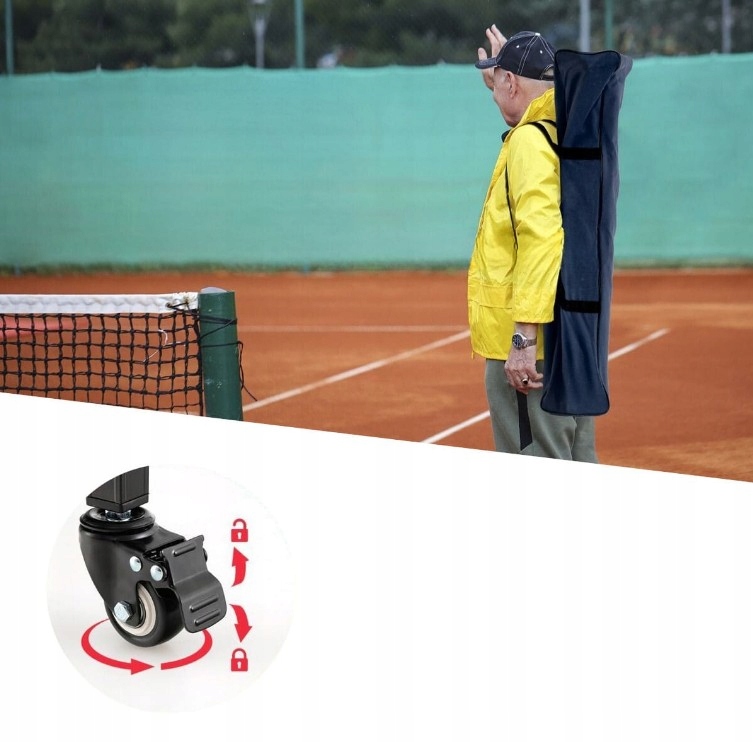 Эта легкая корзина для теннисных мячей оснащена 4 универсальными колесами, поэтому ее можно легко перемещать. Кроме того, два колеса оснащены тормозами, позволяющими зафиксировать тележку на месте, когда это необходимо.