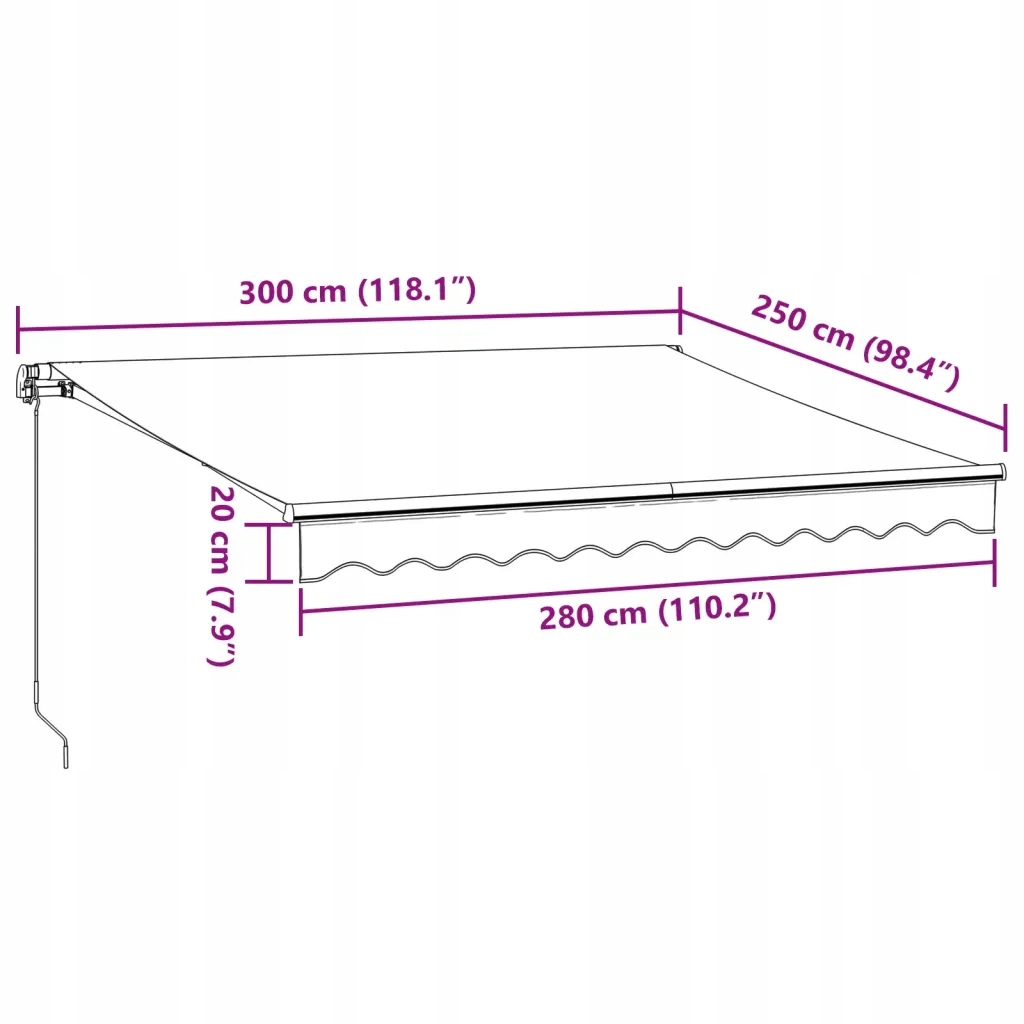 Тент, що висувається вручну зі світлодіодами, антрацит і білий, 300x250 см