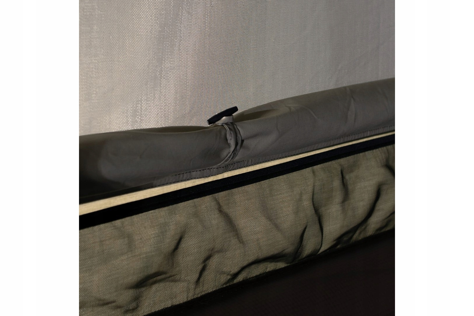 ВЕНТИЛЯЦИЯ И ВОДОНЕПРОНИЦАЕМОСТЬ:Тент изготовлен из прочной смеси хлопковых и полиэфирных волокон. Параметры ткани гарантируют, что она будет водонепроницаемой, устойчивой к плесени и механическим повреждениям, а также обеспечит должную вентиляцию и доступ свежего воздуха внутрь. Москитные сетки, установленные на окнах, защищают от насекомых.