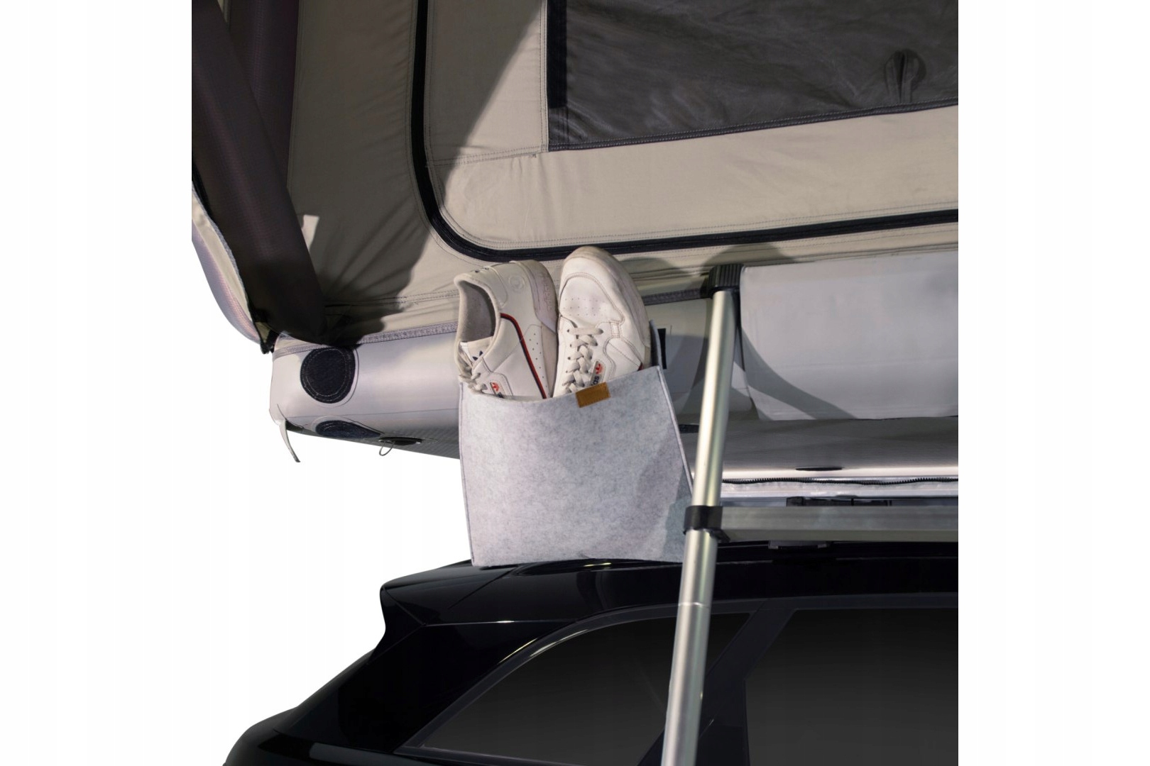 ЛЕГКИЙ ИКОМПАКТНЫЙДИЗАЙН: КРЫША MAXI отлично смотрится на автомобиле. Высота сложенной палатки всего 14 см. Благодаря этому, независимо от того, планируете ли вы разместить его на легковом автомобиле, пикапе, внедорожнике или фургоне, его форма не будет мешать вашему вождению. Палатка весит всего 38 кг.
