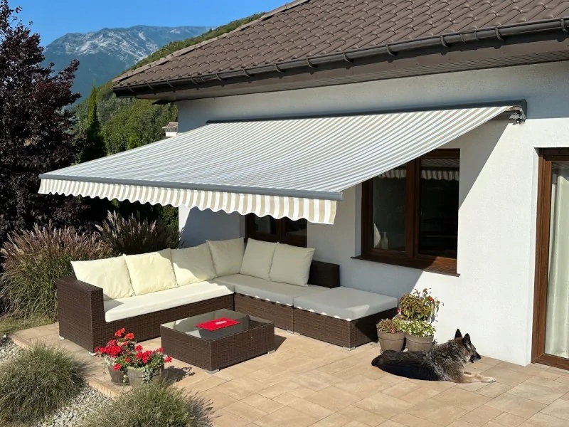 Террасная маркиза АНТРАЦИТ 500х300 Бежево-Белый PREM - Премиум версия - полукассета
