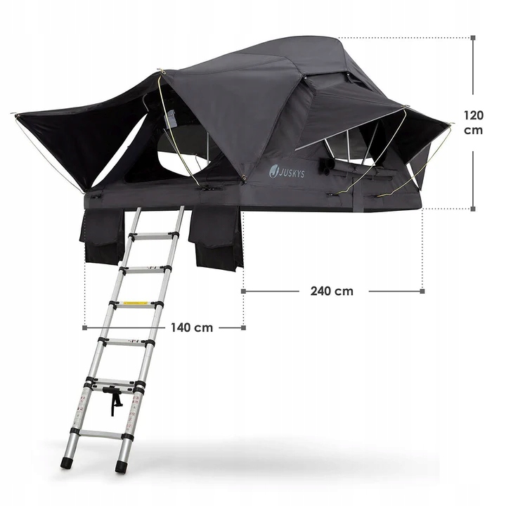 Экономьте на дорогостоящих расходах на проживание в отеле и спите спокойно, где бы вы ни находились, без необходимости искать отель. Он подходит для любого автомобиля с багажником на крыше и обеспечивает комфортное спальное место для 2-3 человек. Удобный съемный матрас, прочный алюминиевый каркас и высококачественные водонепроницаемые материалы обеспечивают защиту от УФ-излучения и влаги. Практичная телескопическая лестница облегчает посадку, а аэродинамический дизайн подходит для автомобиля как багажник на крыше. На борту даже имеется встроенное светодиодное освещение для использования в ночное время. Идеально подходит для автопутешествий, приключений на свежем воздухе или спонтанного отдыха на выходных: с палаткой Lago на крыше вы сможете наслаждаться свободой и комфортом, где бы вы ни находились.