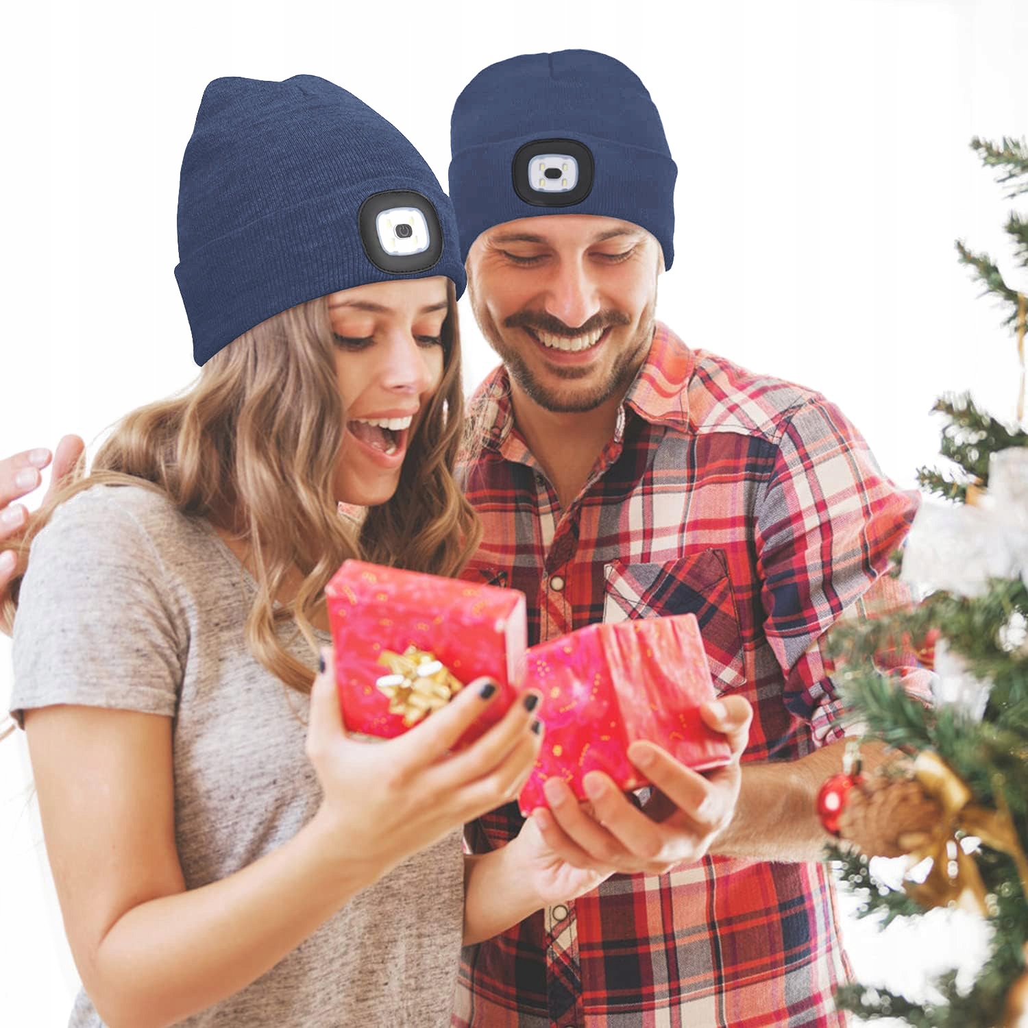 Теплая мужская женская зимняя шапка, темно-синяя, со светодиодным фонариком, зарядкой через USB