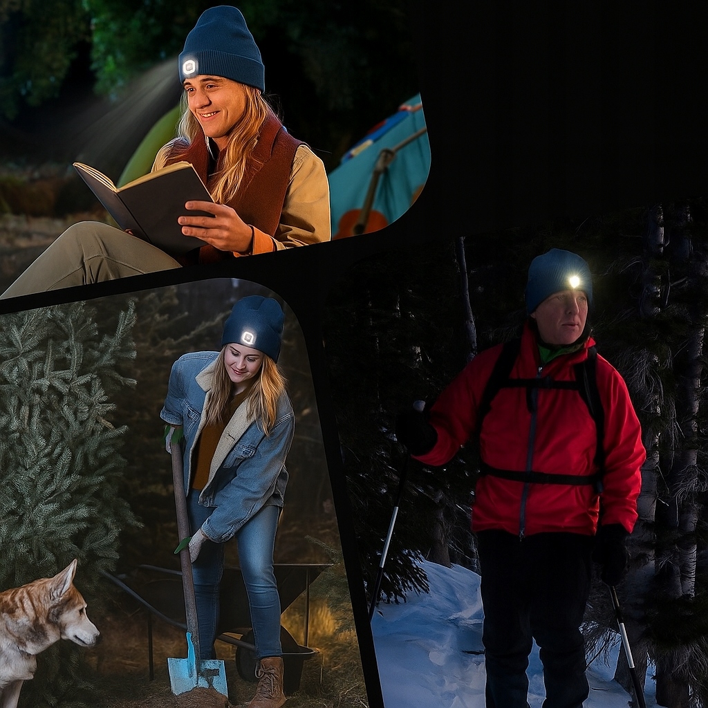 - Прогулка с собакой - даже вечером шапка сделает вас заметным благодаря функции LED.