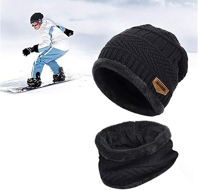 ТЕПЛА ЧОЛОВІЧА ЗИМОВА ШАПКА З ФЛІСОМ + ШАРФ ДЛЯ ГОЛЬФУ, КАМИН, ЧОРНИЙ ПОДАРУНОК