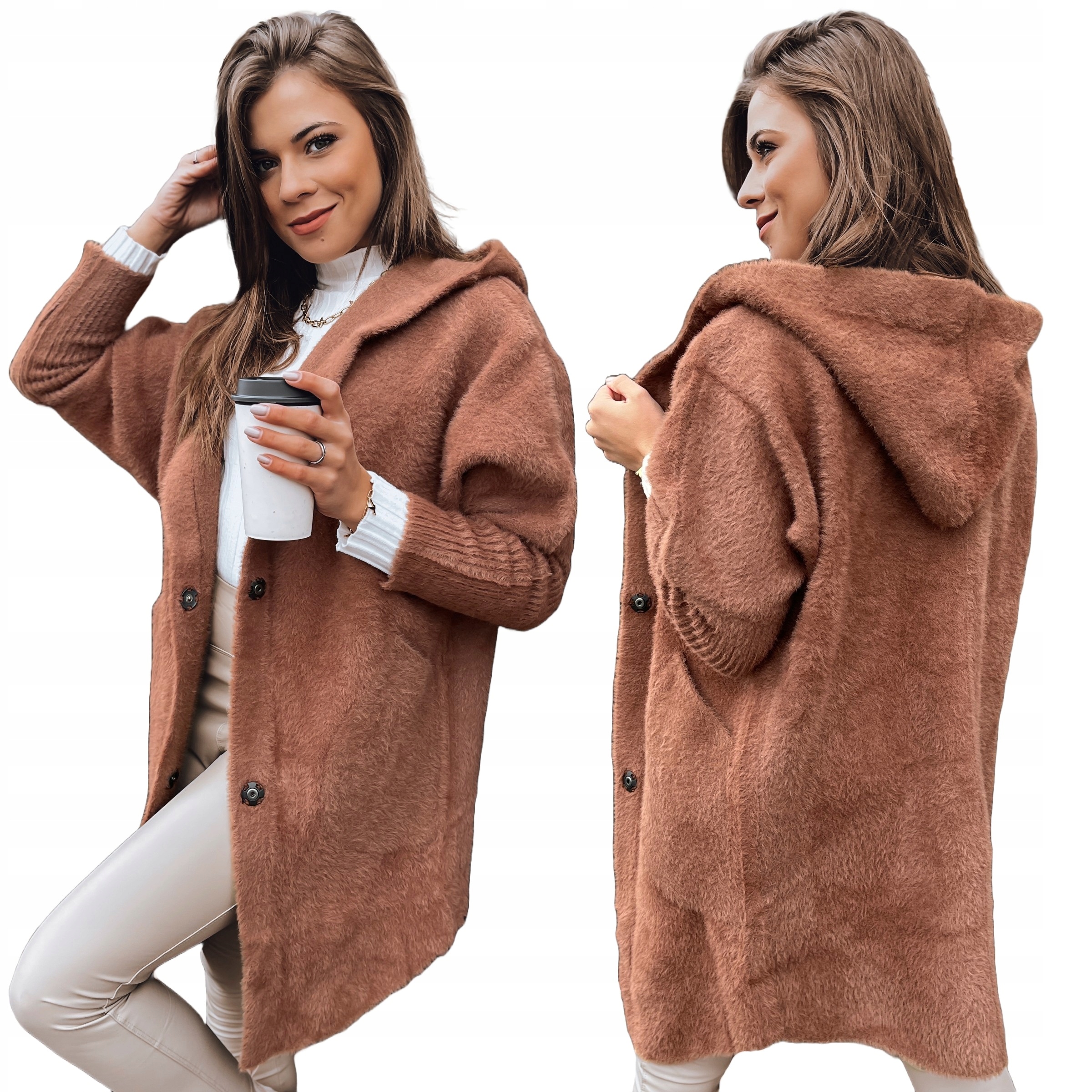 ТЕПЛОЕ ЖЕНСКОЕ ПАЛЬТО ИЗ АЛЬПАКИ С КАПЮШОНОМ