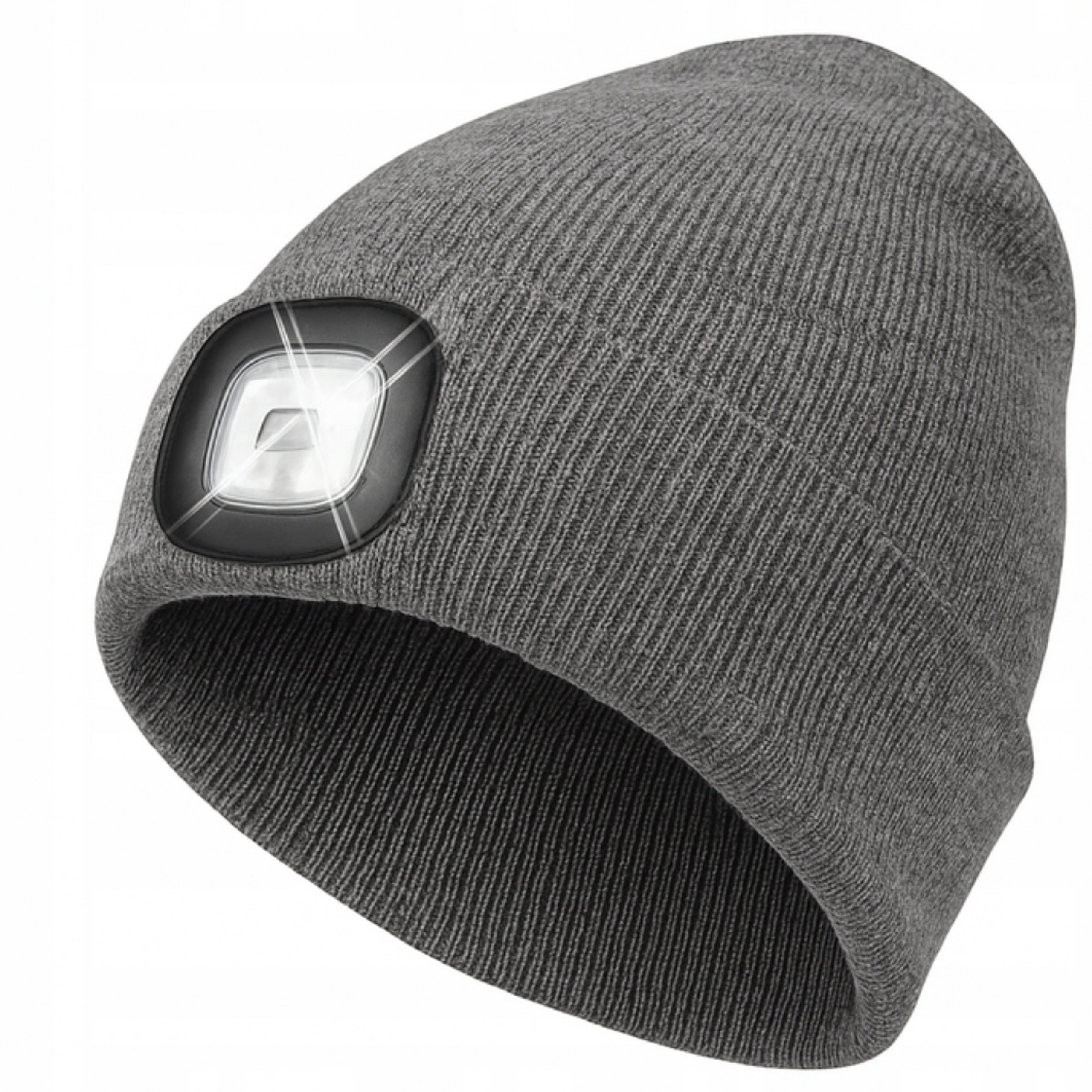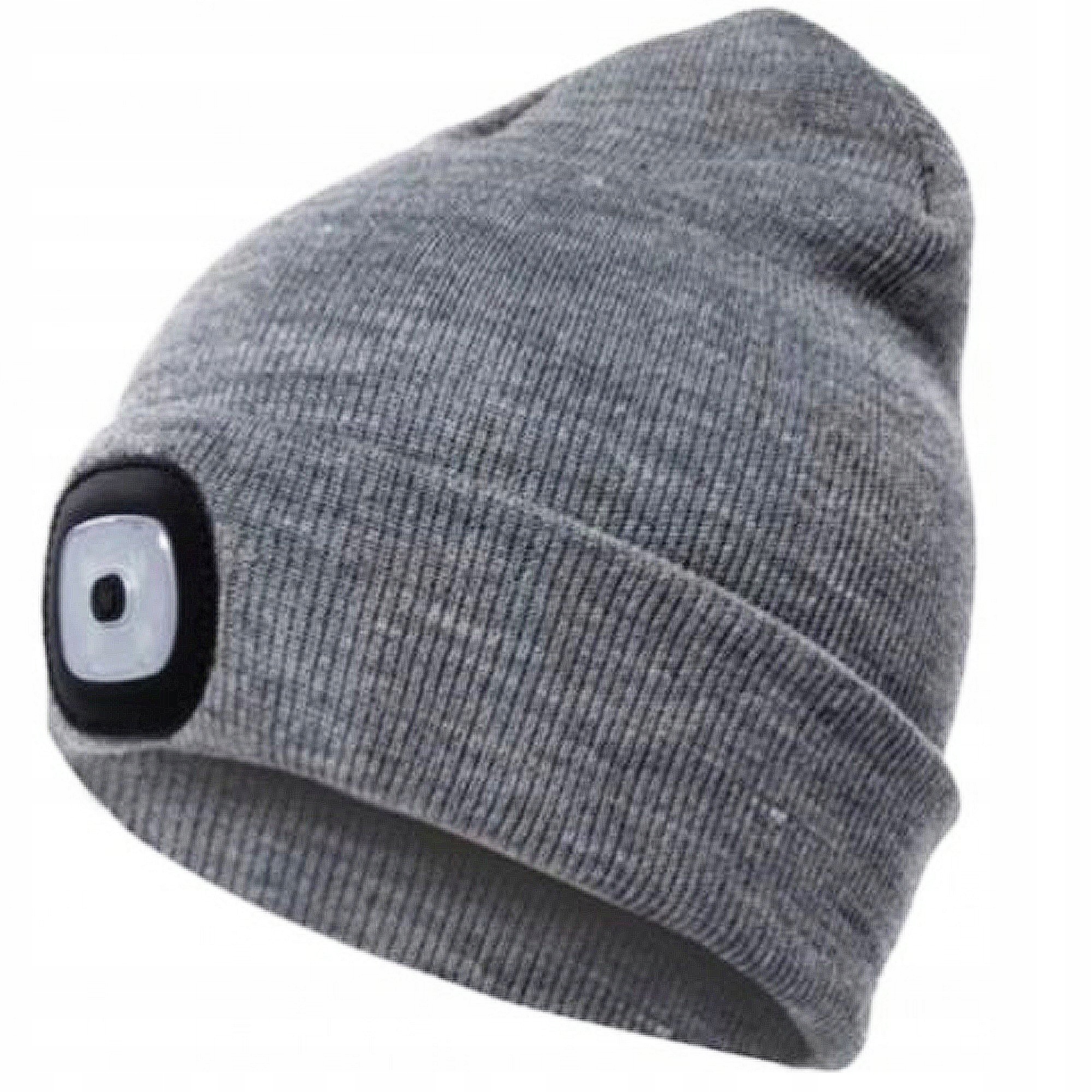 ТЕПЛАЯ ШАПКА СО ВСТРОЕННОЙ СВЕТОДИОДНОЙ ПОДСВЕТКОЙ - СЕРЫЙ ЦВЕТ - ИДЕАЛЬНА В ПОДАРОК, ДЛЯ БЕГА, РЫБАЛКИ И АЛЬПИНГА