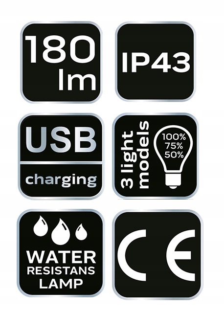 - Класс защиты фонаря IP43 - устойчивость к брызгам воды под любым углом до 60° от вертикали со всех сторон ли >