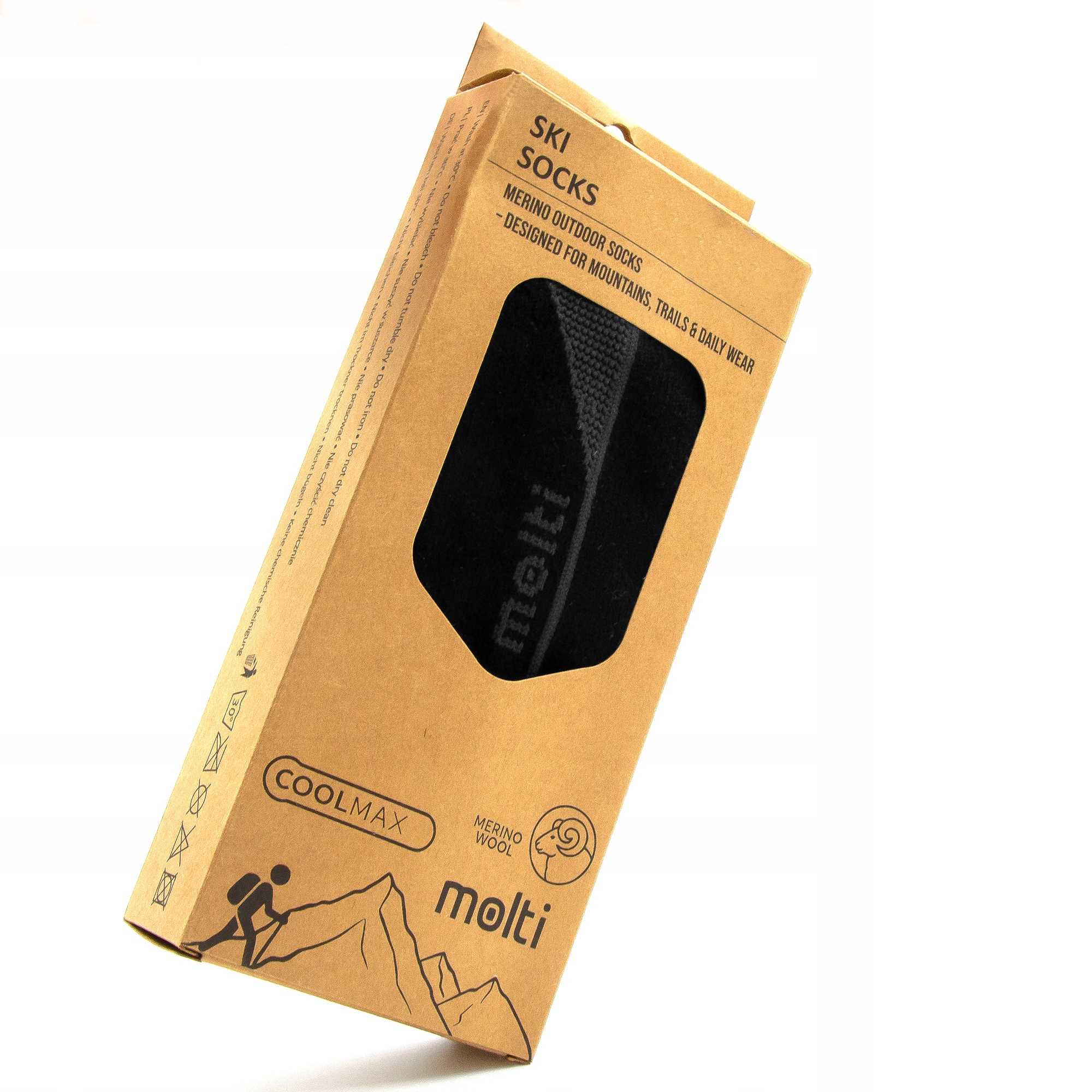 Выбирайте носки, которые будут сопровождать вас на протяжении всего дня катания! Модель лыж molti сочетает в себе естественную терморегуляцию шерсти мериноса с современной технологией Coolmax®, которая эффективно отводит влагу и сохраняет ноги сухими.