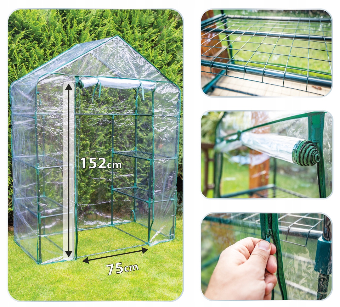 - Он закрывается на практичную молнию, а переднюю часть теплицы можно свернуть, чтобы было легче обращаться с растениями, поливать их или проверять растения.