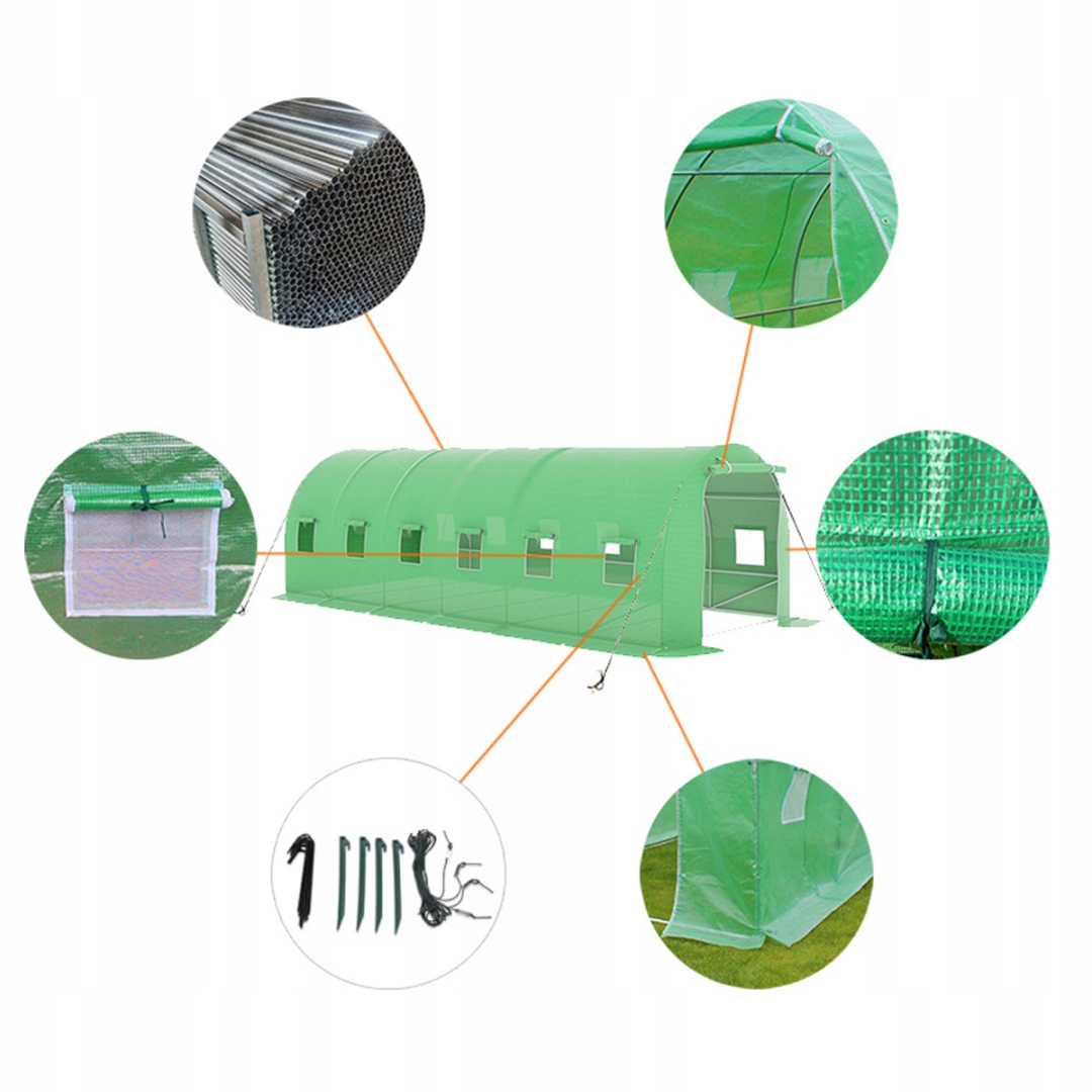☑️ Окна с москитной сеткой - Благодаря возможности открытия окон с москитной сеткой мы можем лучше контролировать урожай. При необходимости мы можем увеличить количество поступающего света. Открытые окна положительно влияют на циркуляцию воздуха и контроль температуры внутри тоннеля. Горячий воздух, который легче, поднимается вверх и выходит через открытые окна, обеспечивая оптимальные условия для наших культур.
