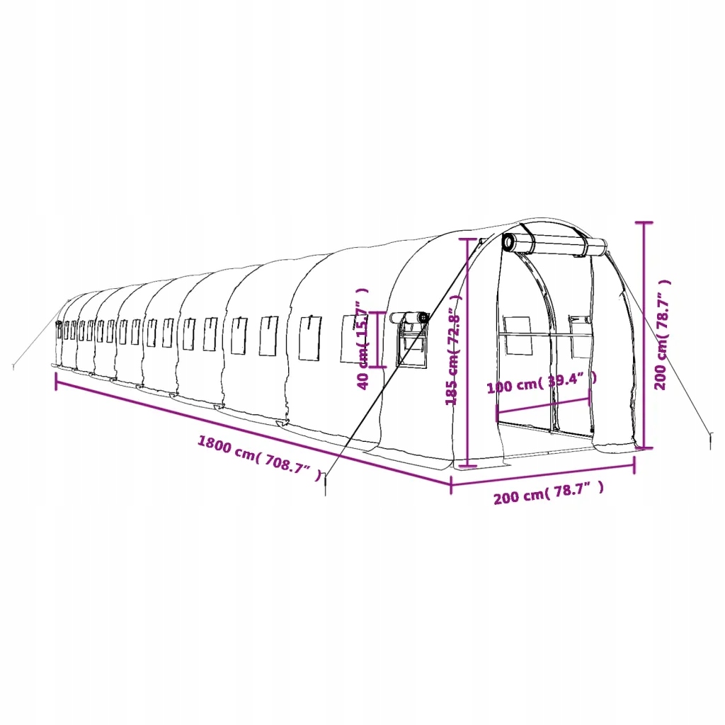 теплица со стальной рамой, белой, 36 м², 18x2x2 m h1>