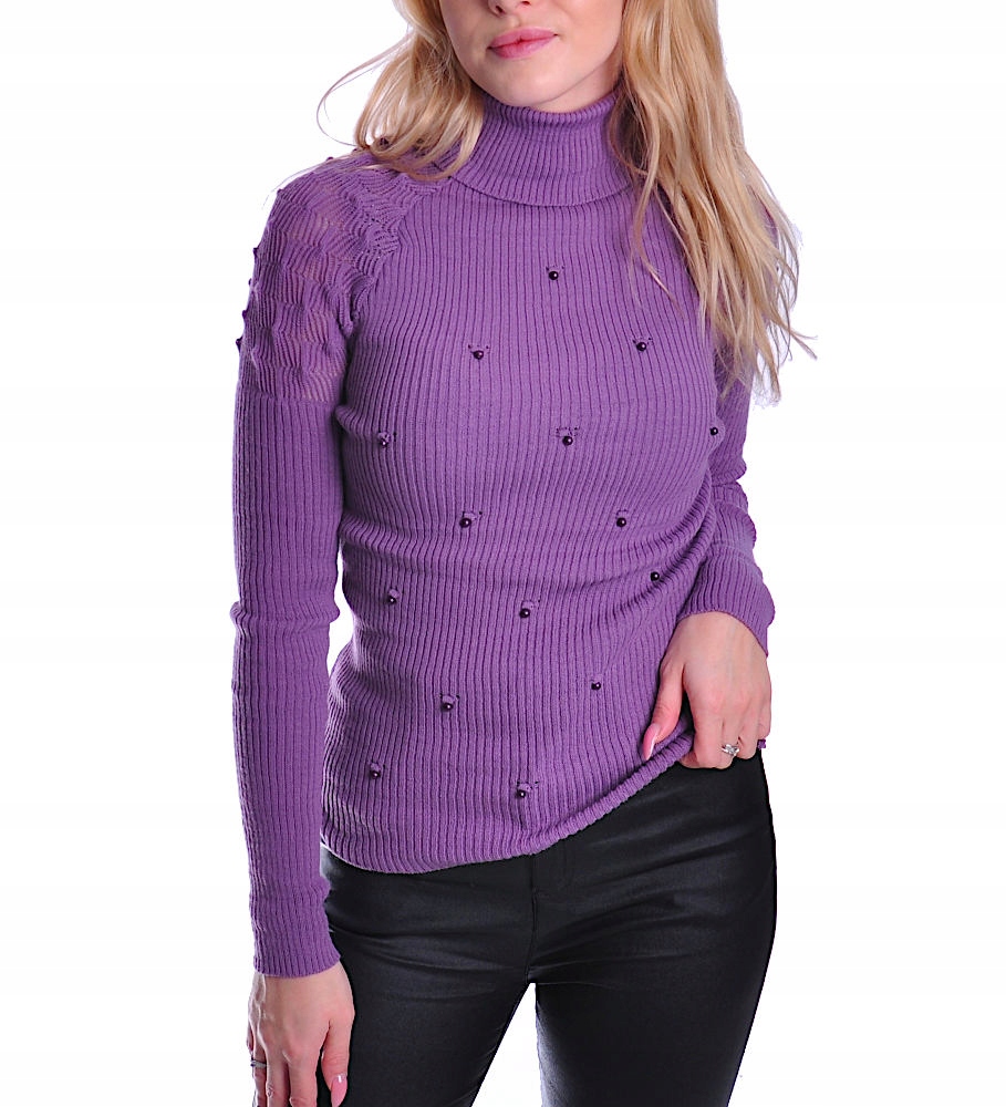 ТЕПЛИЙ ФІОЛЕТОВИЙ ЖІНОЧИЙ ГОЛЬФ З ПЕРЛАМИ UB395