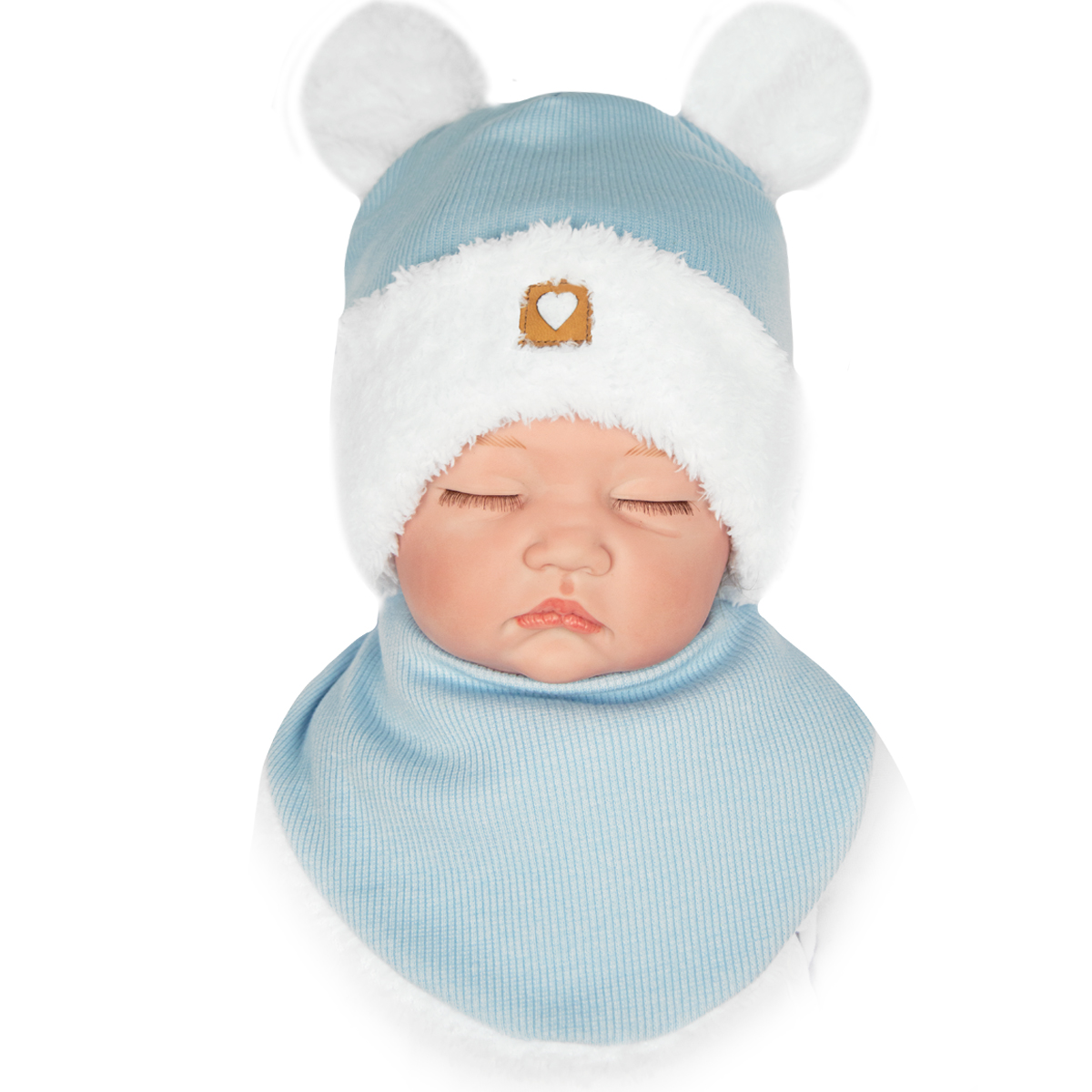 <р> – внешний слой: 95% хлопок, 5% эластан <р> – Мех 100% полиэстерПрактичный и необходимый зимой комплект, утепленный пушистым мехом - синяя шапка и шарф.