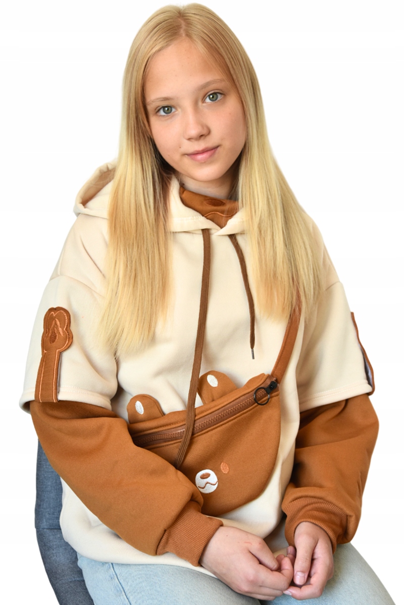 СВИТШОТ ТЕПЛЫЙ МЕДВЕДЬ С КАПЮШОНОМ, МОЛОДЕЖНЫЙ, СВЕТЛО-КОРИЧНЕВЫЙ, БЕЖЕВЫЙ, ОСЕНЬ М