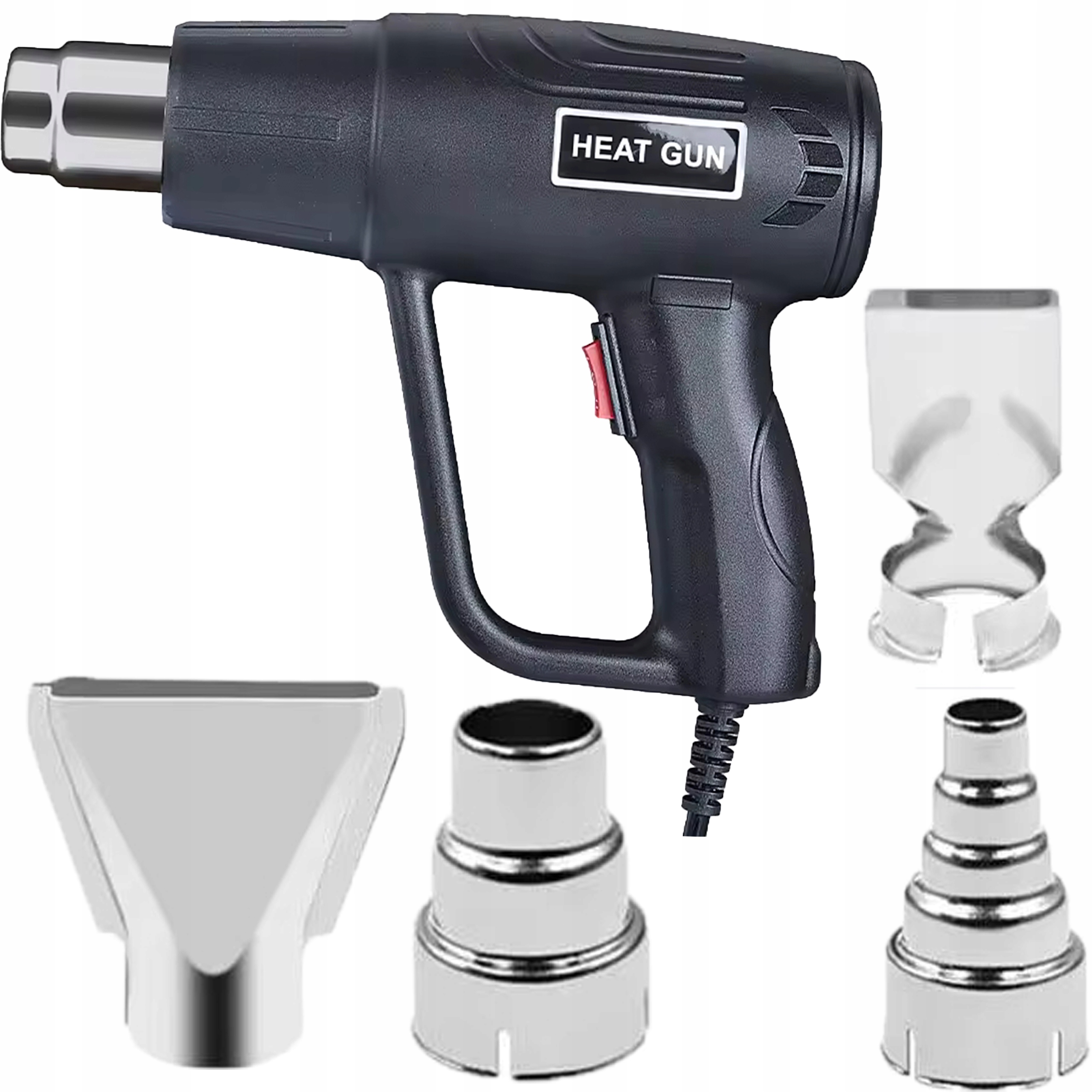ТЕПЛОВА ГАРМАТА ЕЛЕКТРИЧНА + 4 НАСАДКИ 2 ПЕРЕДАЧІ 100-600°C 2000W РЕГУЛЮВАННЯ 230V ПОТУЖНА