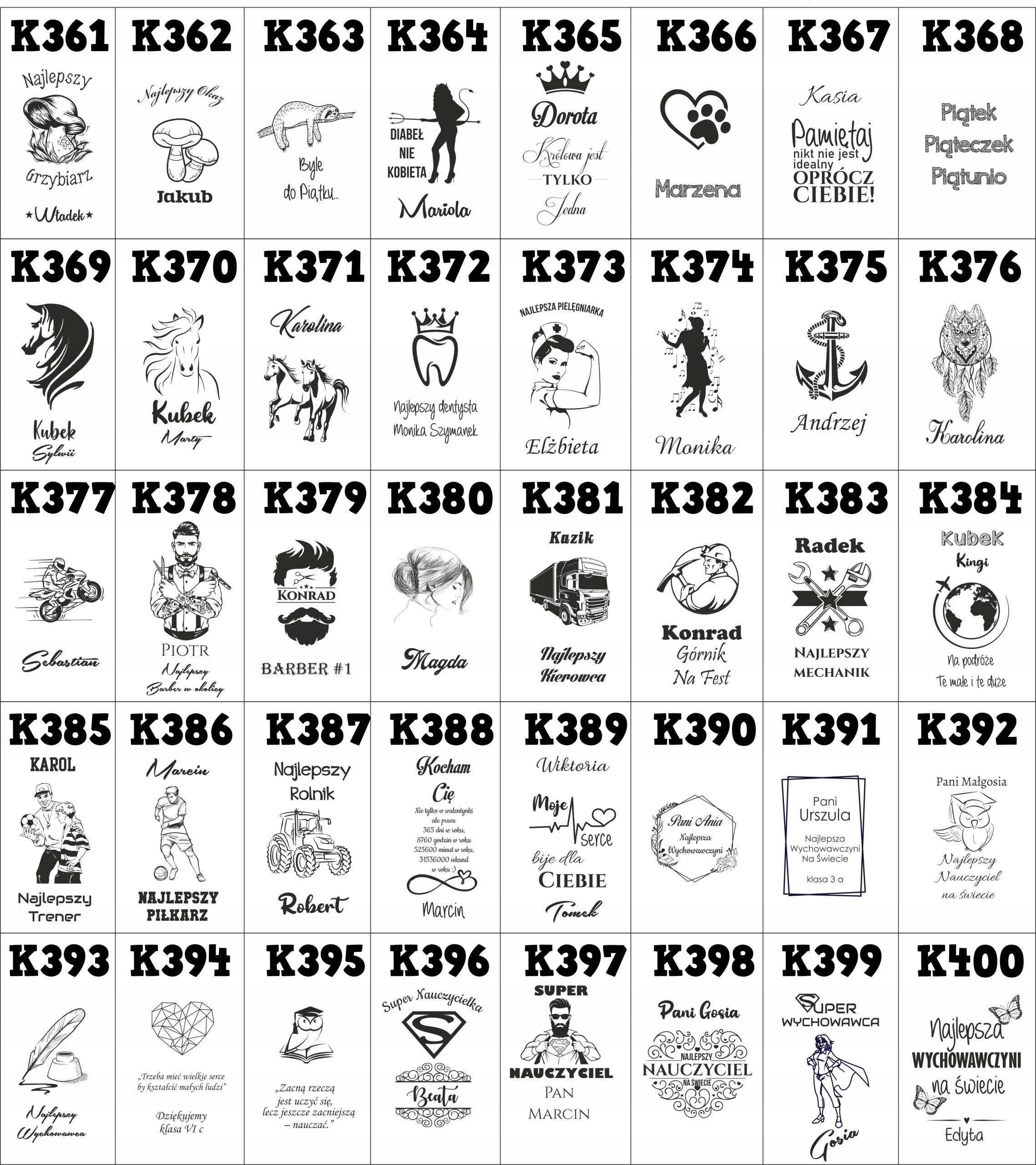 Наше предложение включает в себя почти 400 дизайнов на выбор для всех и многих раз! Каждый шаблон может быть отредактирован или изменен в вашем собственном любите или выберите готовый шаблон и персонализировал его с помощью имени, даты или текста по -своему.
