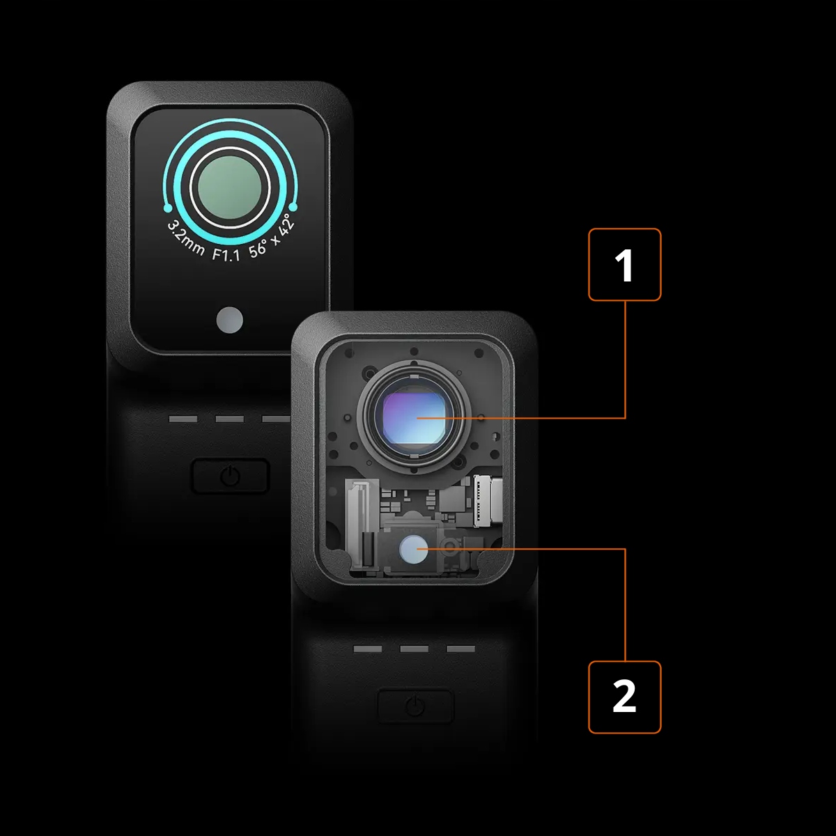 - Камеру можно стационарно закрепить на корпусе благодаря практичным держателям, встроенным в устройство, которые можно легко настроить на любой телефон