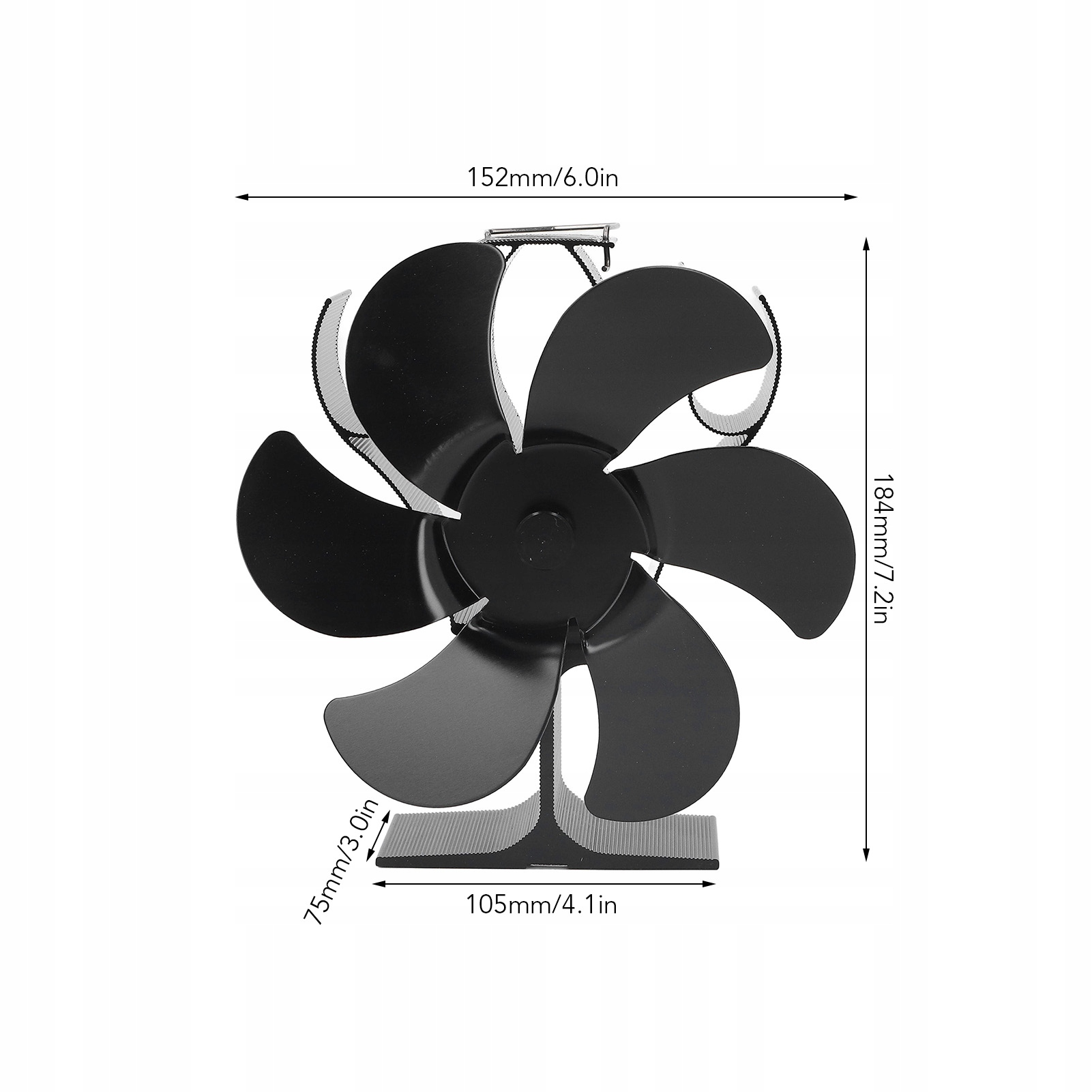 ◼️Повышайте комфорт быстрее: 6-лопастной каминный вентилятор с тепловым приводом повышает комфорт быстрее. Когда температура печи низкая, поток воздуха большой, а скорость высокая.