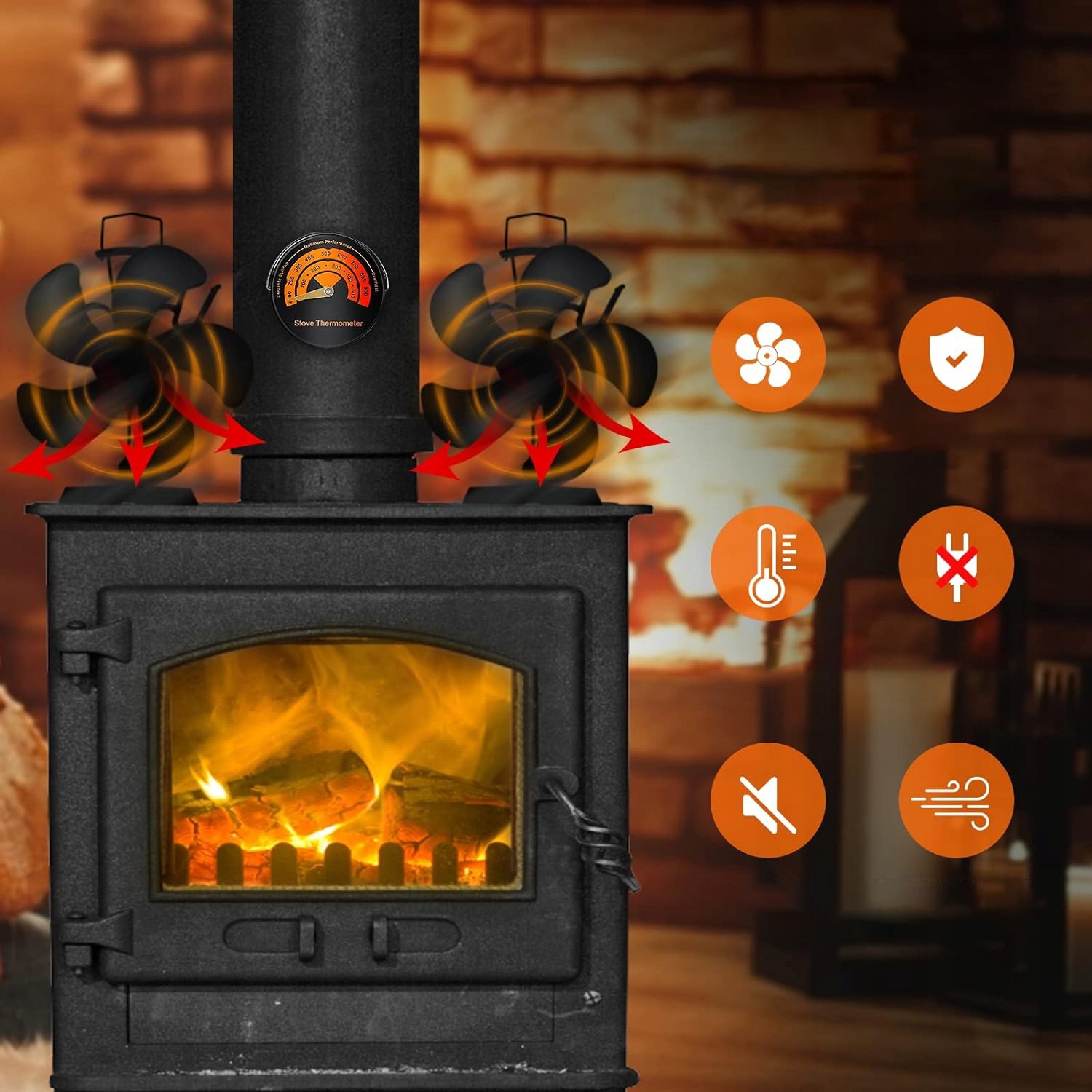 Тепловой вентилятор преобразует тепловую энергию поверхности печи в кинетическую энергию вращения и автоматически регулирует скорость в соответствии с температура поверхности печи. Не требуются ни батарейки, ни электричество.