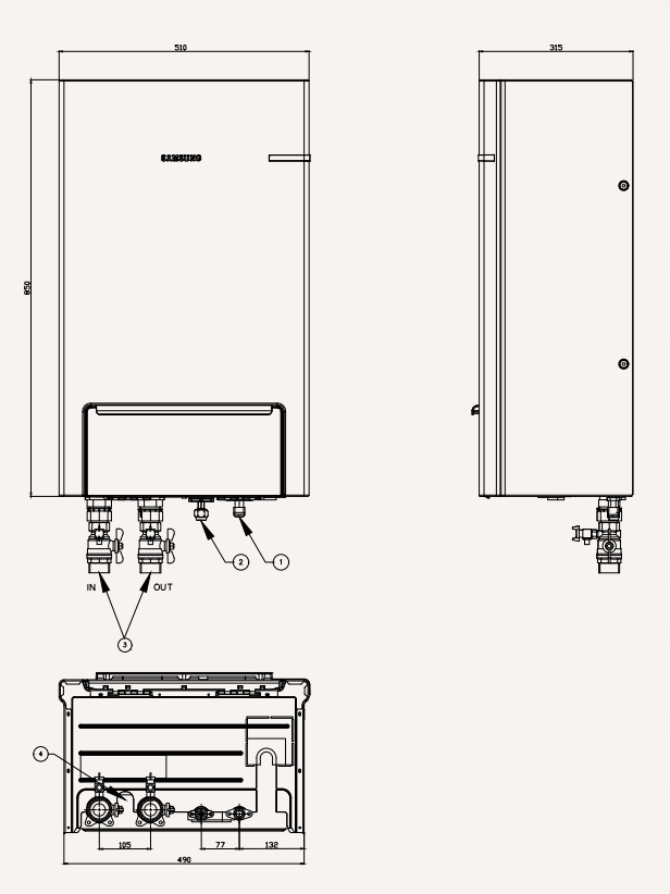 - Размеры нетто (Ш x В x Г) [мм]: 510 x 850 x 315
