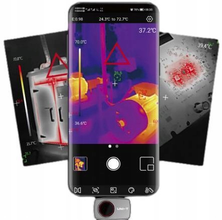 UTi720M — это профессиональный модуль тепловизионной камеры для смартфонов, который компактен, портативен и прост в использовании благодаря возможности подключения к мобильным телефонам. ИК-разрешение 256×192 обеспечивает четкое изображение и быстрый отклик. UTi720M имеет широкий диапазон измерения температуры -20℃ ~ 200℃. С помощью этого модуля тепловизионной камеры пользователи могут быстрее и проще устранять неполадки в системах отопления, вентиляции и кондиционирования воздуха или исследовать проблемы с источниками тепла во всем доме и скрытые проблемы. Это идеальный инструмент для любителей DIY, любителей активного отдыха, инженеров, подрядчиков, строителей и т. д.