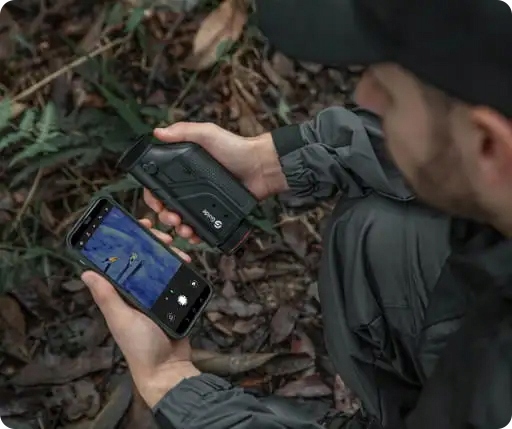 Встроенный модуль WiFiпозволяет подключить монокуляр к мобильному приложению и отправить изображение прямо на смартфон.