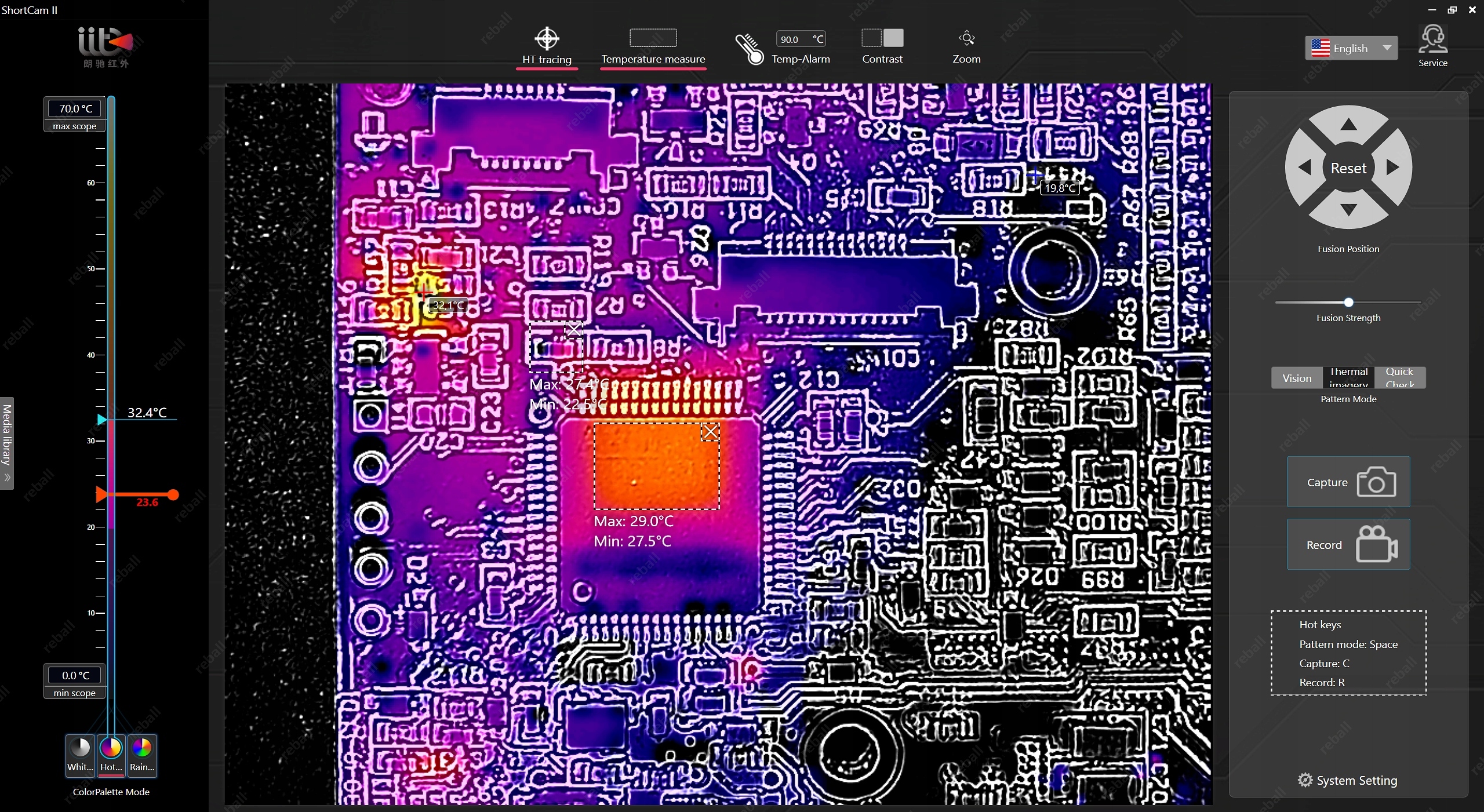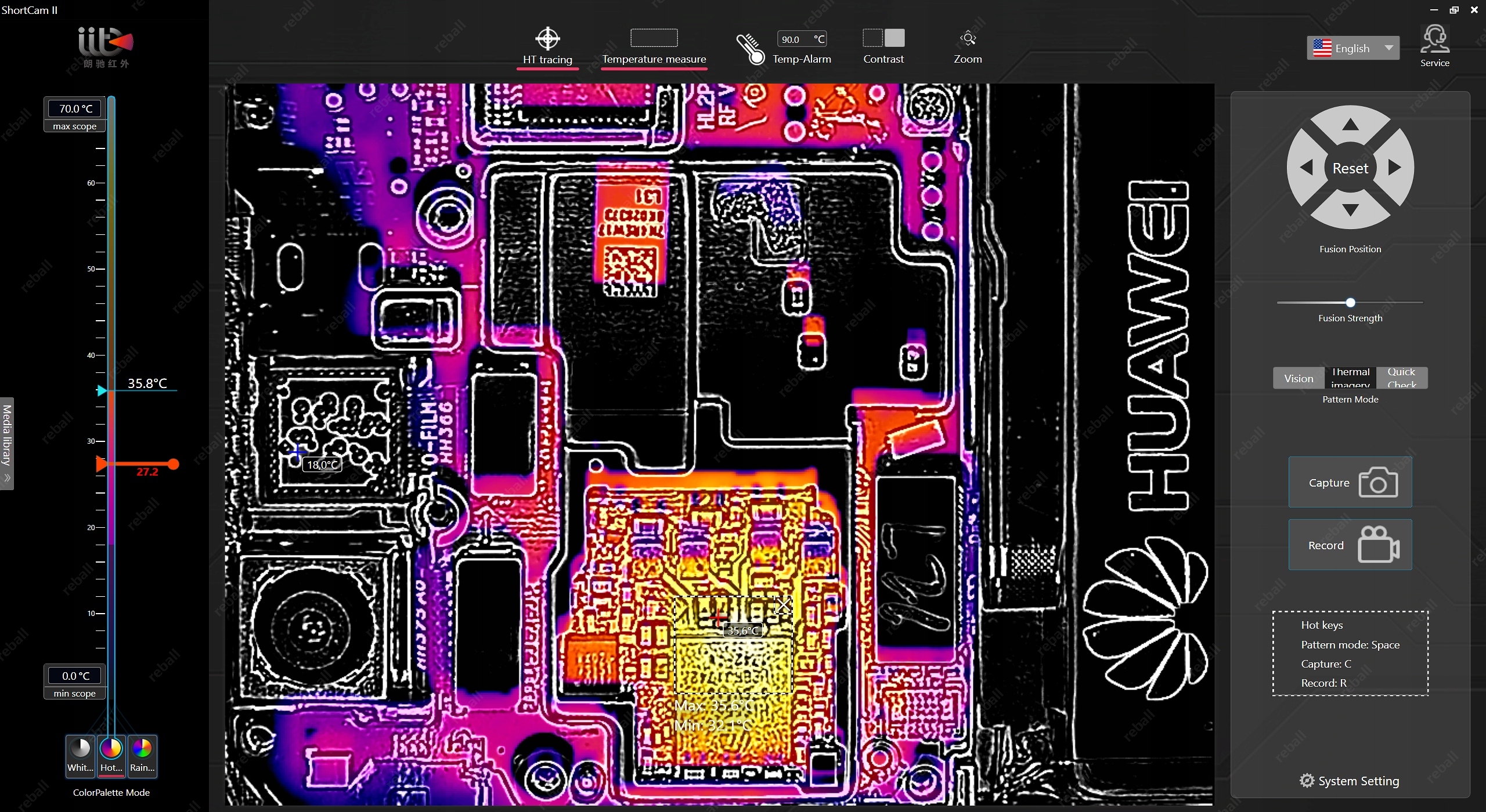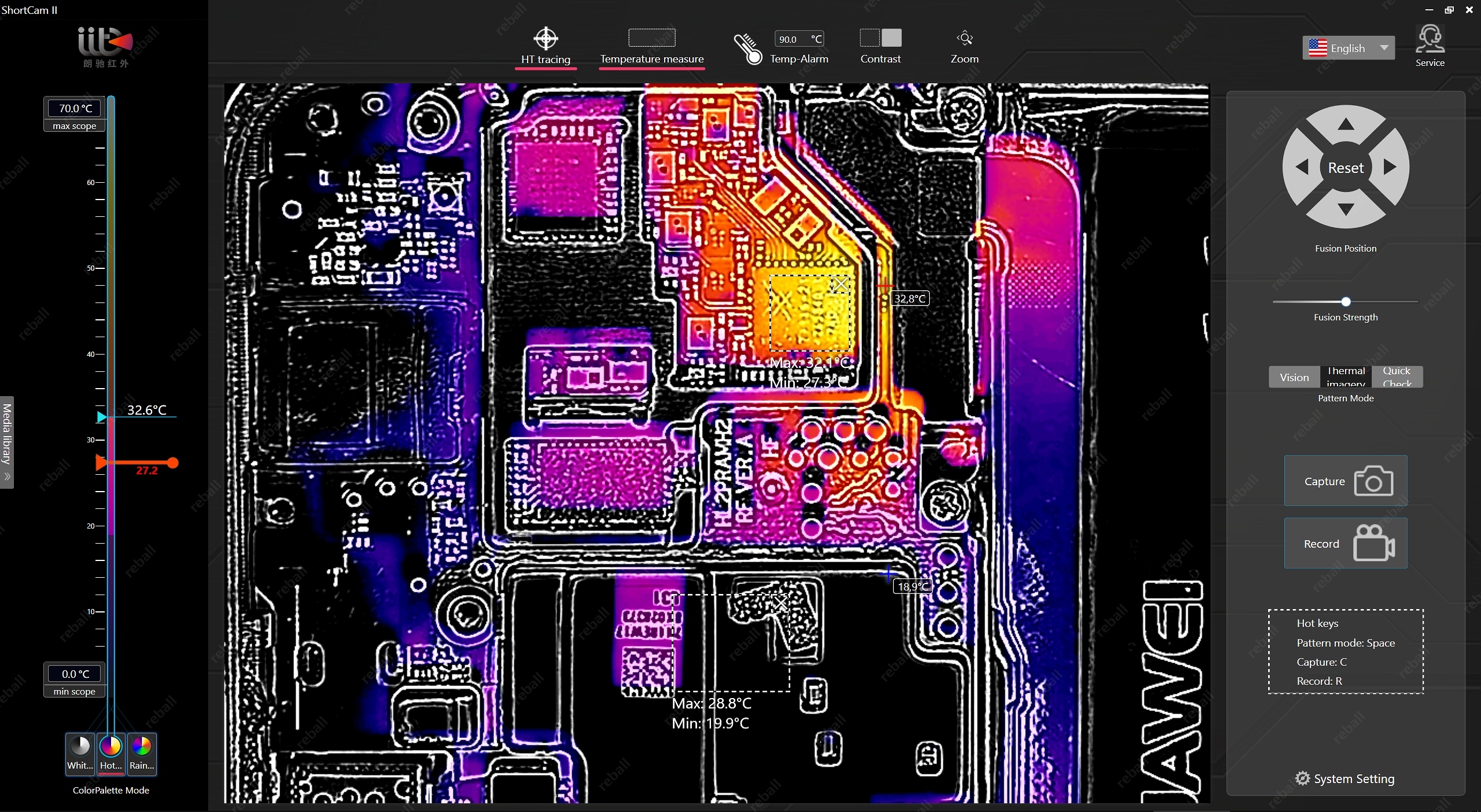 - высокое разрешение детектора HD 256x192 дает большую гибкость в увеличении деталей материнской платы и легком поиске мелких элементов.