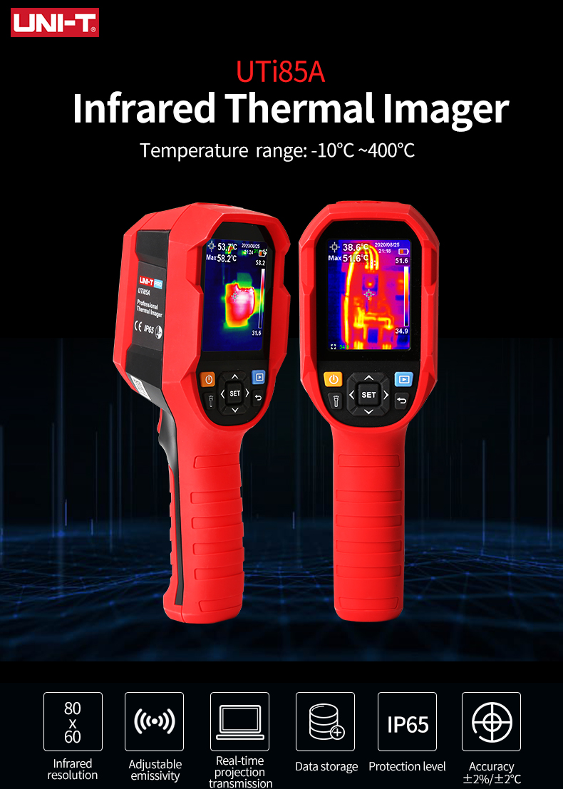UTi85A — это универсальная, прочная, эргономичная тепловизионная камера с превосходными характеристиками. Он использует детектор UFPA, обеспечивающий превосходное инфракрасное разрешение и широкий диапазон режимов палитры изображений. Он также имеет звуковую сигнализацию и передачу изображения в реальном времени, что удобно для различных типов применений.