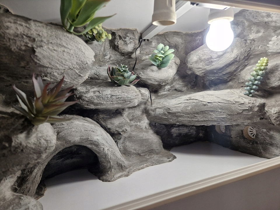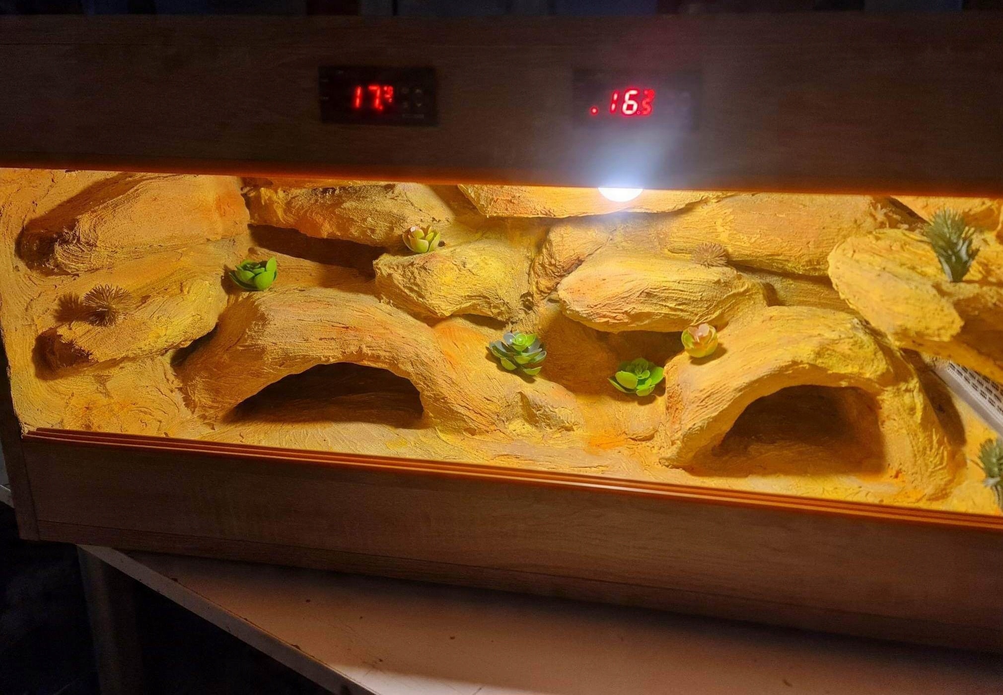 На фотографиях представлены террариумы, изготовленные нами по индивидуальному заказу и могут служить образцом для последующих работ. Заказанное вами террариумы не будут копией представленных ниже – но могут быть похожими. Мы строим каждый танк с нуля. Покупатель может выбрать расположение камней (если это возможно) и цвет фона террариума.