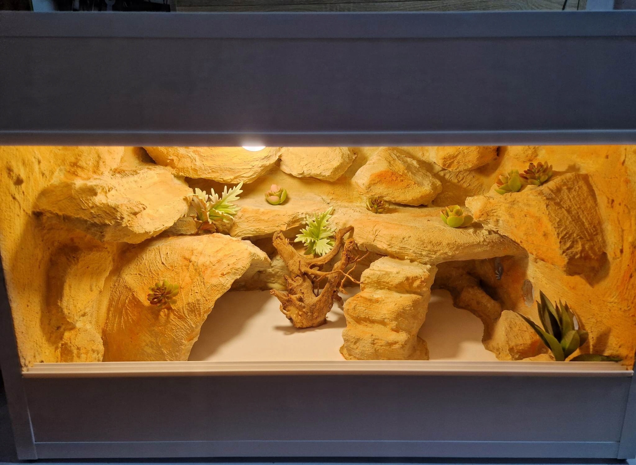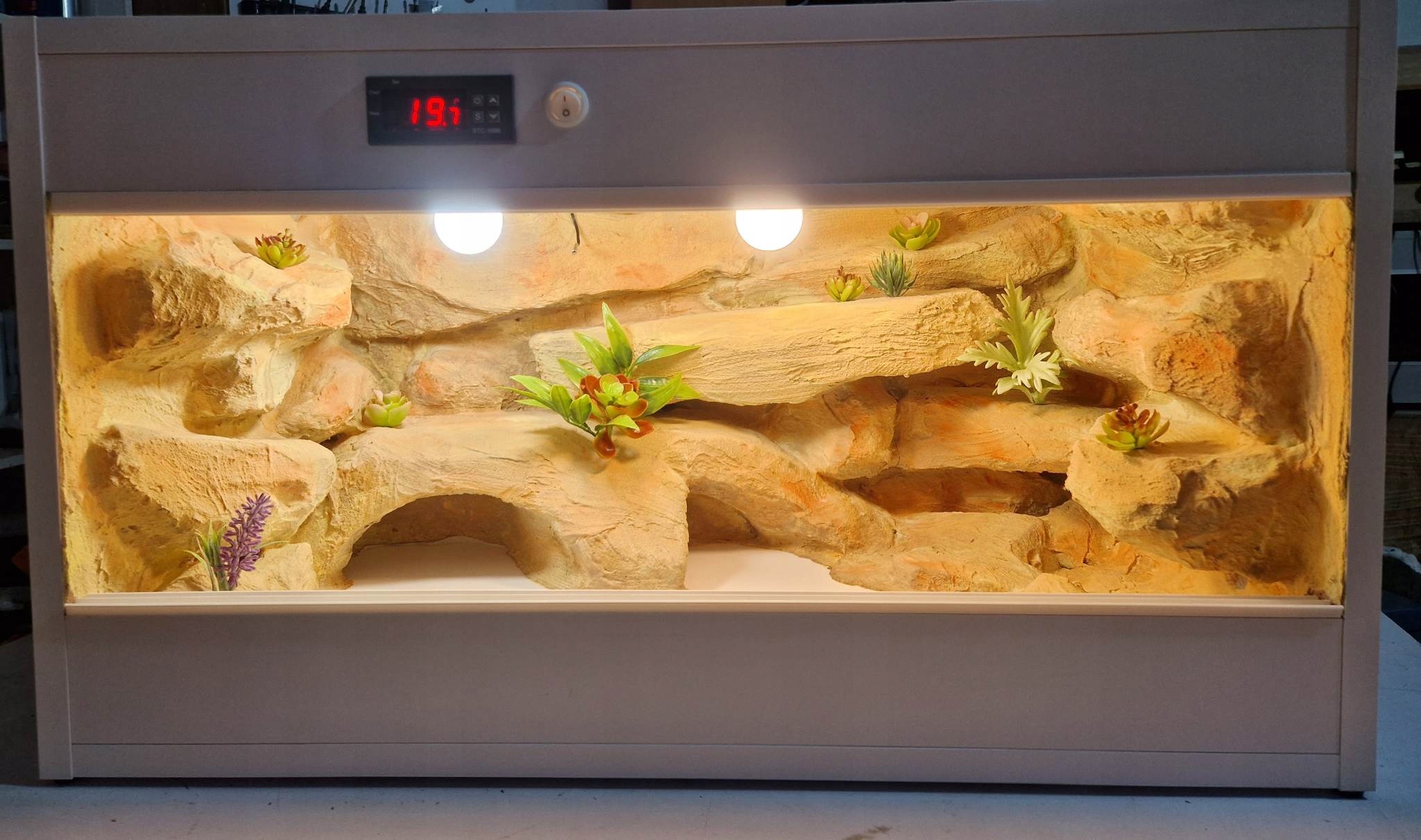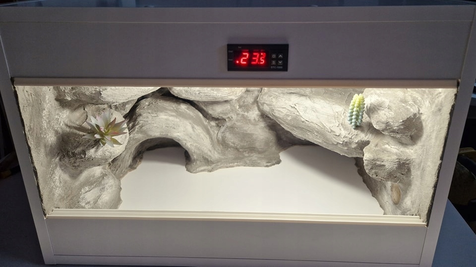 Корни, контроллеры, выключатели, лампочки, черепа, гигрометры, видимые на некоторых примерах фотографий, не входят в базовое оборудование террариума . Однако за дополнительную плату возможно дооснащение резервуара.