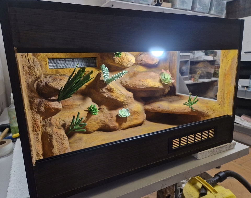 На фотографии показывают террариумы, которые мы сделали на индивидуальном порядке, и могут быть моделью для последующей работы. Террария, заказанная вами, не будет копией, как представленная ниже, но они могут быть похожи. Мы строим каждый бак с нуля. Покупатель имеет возможность выбрать камень (насколько это возможно) и фонового цвета террариума.