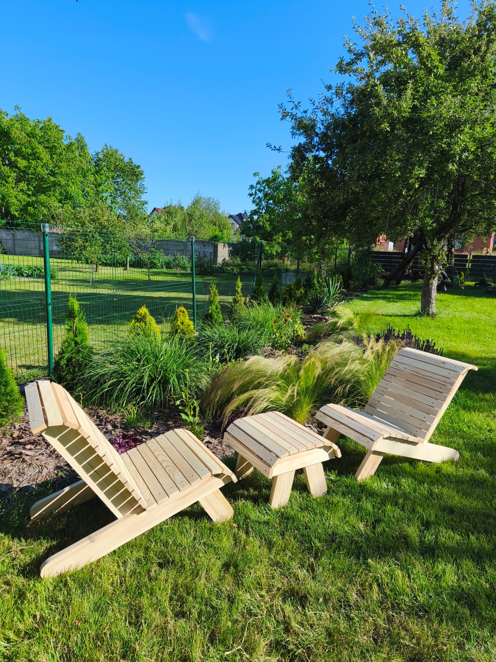 Создайте уникальную зону отдыха на открытом воздухе благодаря нашему элегантному набору садовой мебели! Изготовленный из высококачественного натурального дерева, набор состоит из двух эргономичных сидений и функционального подвода/стола. Их современный, слегка изогнутый дизайн гарантирует удобство, и в то же время идеально подходит для зеленого окружения.