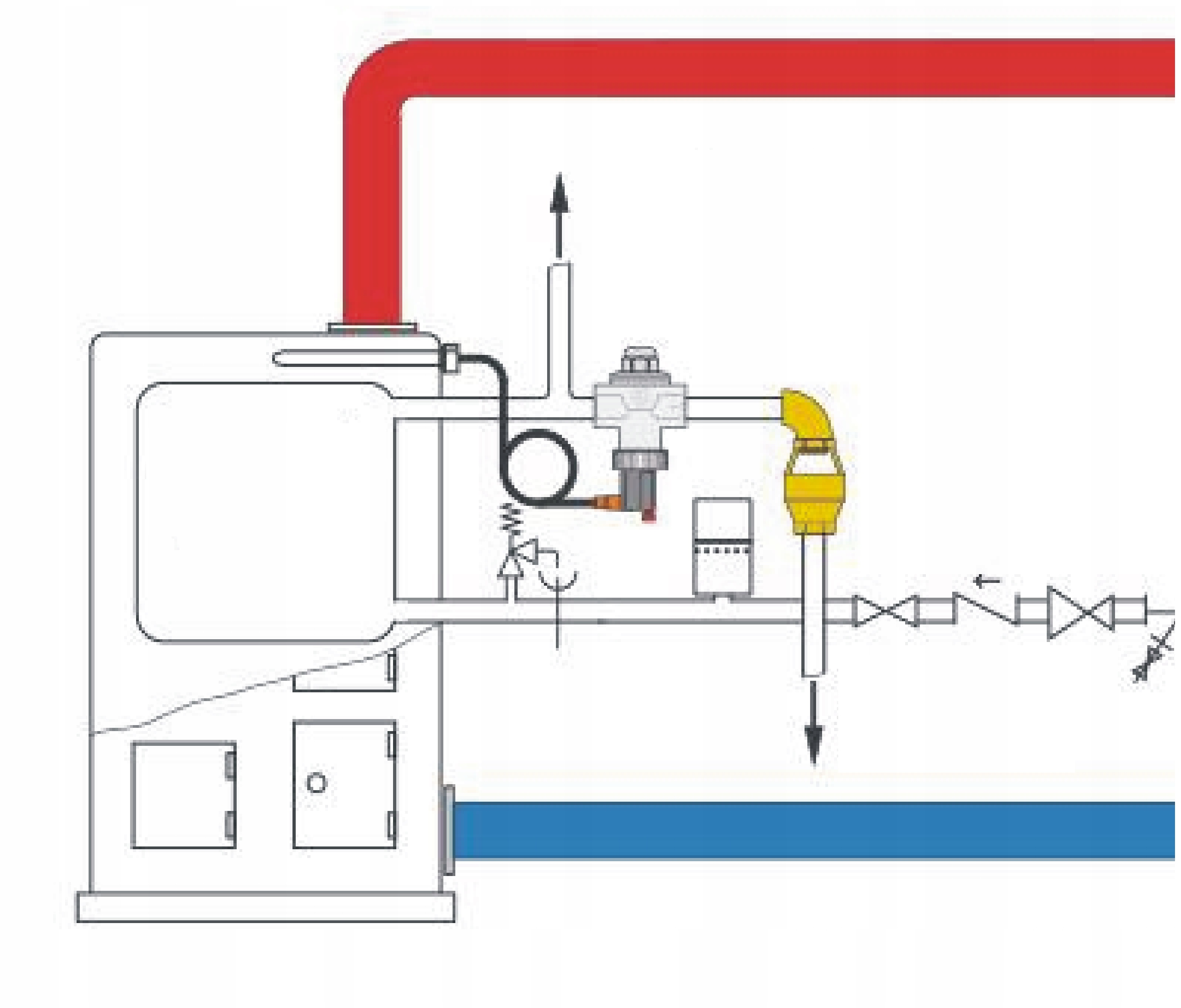 Предохранительный клапан открывается автоматически при превышении температуры воды допустимого значения, что предотвращает взрыв котла, бака, трубопровода и т. д.