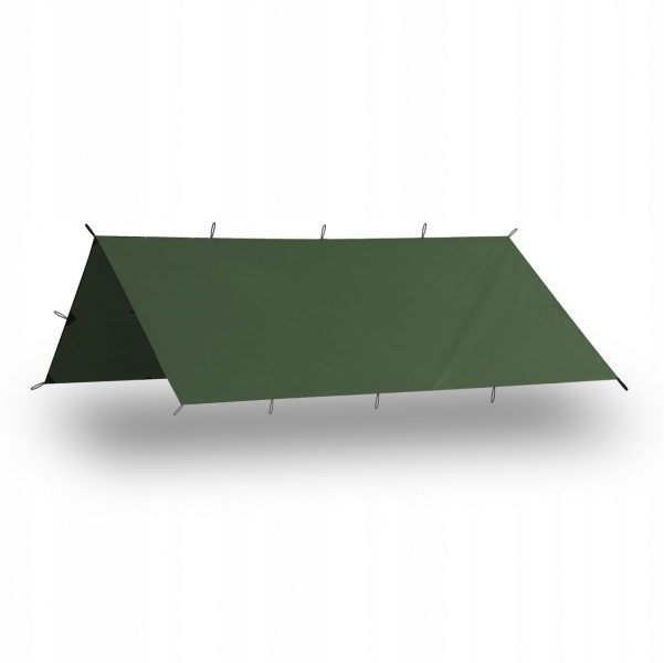 Брезент изготовлен из легкого, прочного и водонепроницаемого материала. Проклеенные швы и места крепления обеспечивают высокую долговечность изделия. Усиленные крючки позволяют превратить конструкцию полотна в двускатную палатку, импровизированное типи или большую крышу, под которой в считанные мгновения развернется походная жизнь.