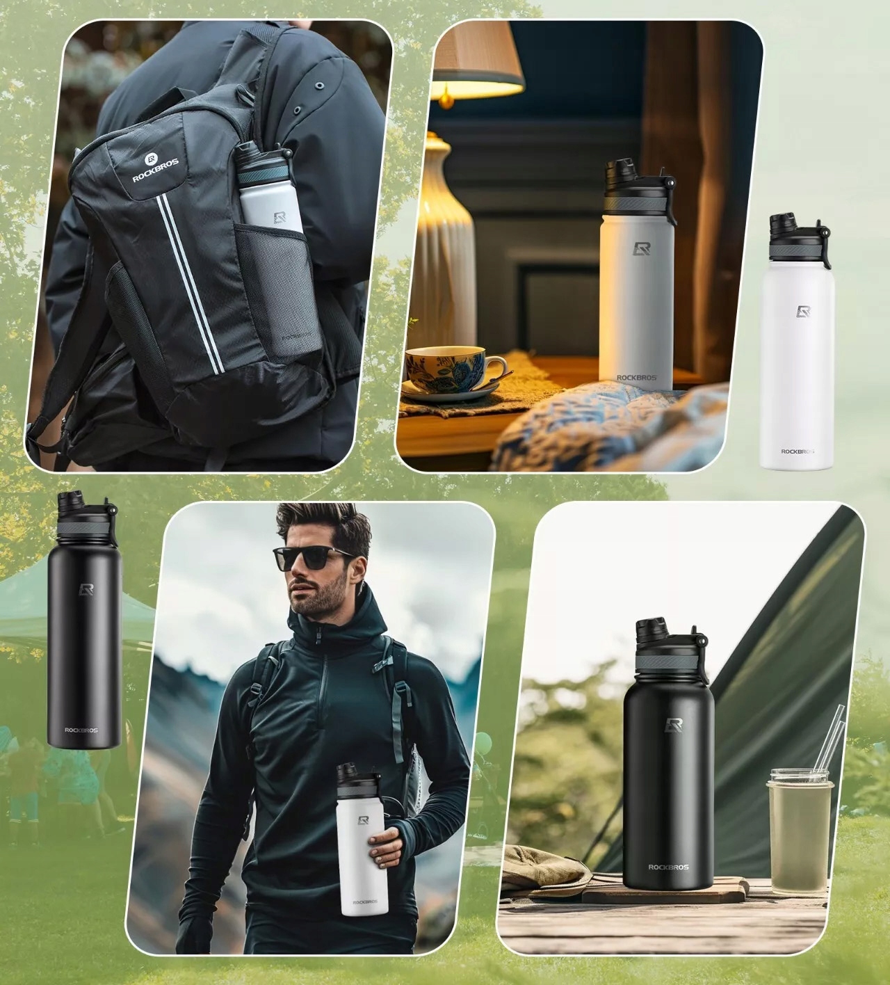 Термобутылка ROCKBROS — это универсальное решение, которое подойдет во многих ситуациях. Он пригодится в учебе или на работе, чтобы вы могли выпить теплый кофе или чай, когда захотите. Возьмите его с собой в спортзал и на тренировку, чтобы избежать обезвоживания во время тренировки. Вы также можете взять его с собой в путешествие, на прогулку, в поездку или использовать дома или в саду при выполнении повседневных дел. Правильное увлажнение – основа здоровья организма.