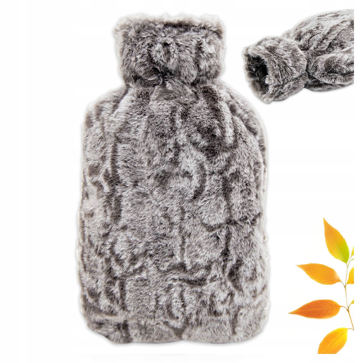 Резиновая бутылка с горячей водой для горячей воды холодно в сером плюшевом мехе 2 л.