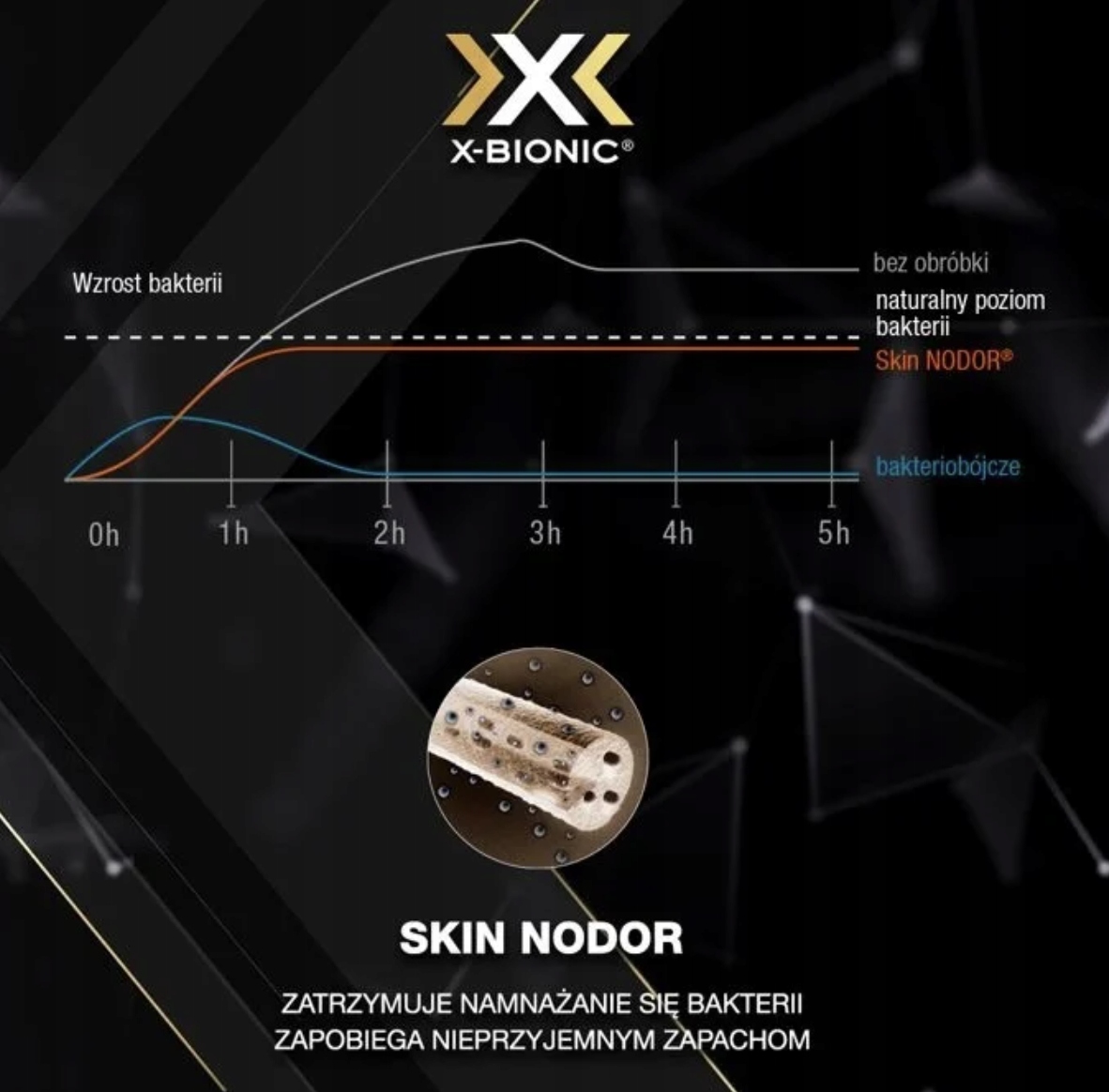 Это активное нановолокно, содержащее неорганические антибактериальные частицы. Постепенное высвобождение ионов является ключом к подавлению роста и скорости размножения микроорганизмов, избыток которых вызывает появление неприятных запахов. Технология SkinNodor® ограничивает размножение микроорганизмов, но не является бактерицидной, поэтому не возникает аллергических реакций, а материал щаден для кожи.