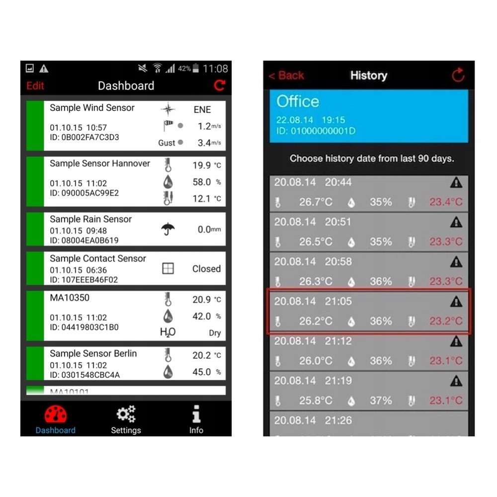 Возможность просмотра архивных данных за последние 90 дней также может оказаться чрезвычайно ценной функцией для многих пользователей системы. Данные обновляются и сохраняются с интервалом каждые 7 минут, где вся история представлена в виде таблицы.Только линейные датчики PRO (с маркировкой PRO) позволяют осуществлять графическую визуализацию данных – создание диаграмм, а отдельные, отмеченные лупой, позволяют просматривать измерения из веб-браузера (WeatherHub Observer).