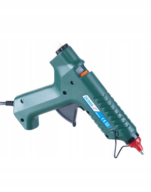 Горячий клеевой пистолет Dedra весом 0,35 кг предназначен для быстрого склеивания элементов из дерева, керамики или железа. В этом случае клей нагревается внутренним нагревателем, а затем точно наносится специальной насадкой.
