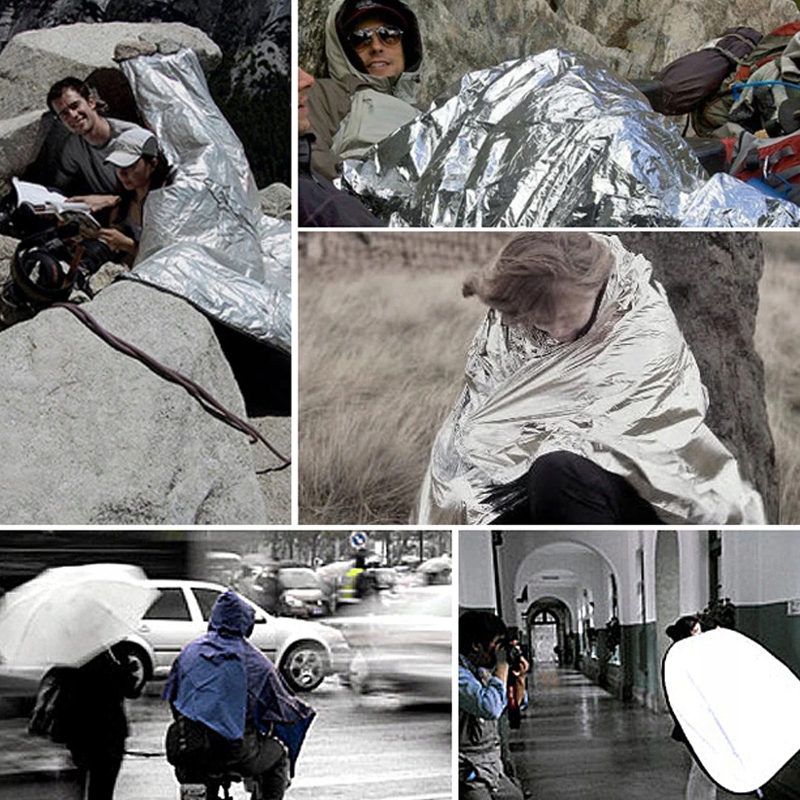 Фольга водонепроницаем, то есть она не пропускает воду. Представьте, что ситуация идет дождь, холод, и вам нечего согреться и защитить от дождя. У нас есть решение для этого! Тепловое одеяло также является отличным инструментом против защиты от дождя. Это не только разогревается, но не позволит вам промокнуть! Идеально подходит для различных поездок на рыбалку или поездок на озеро!