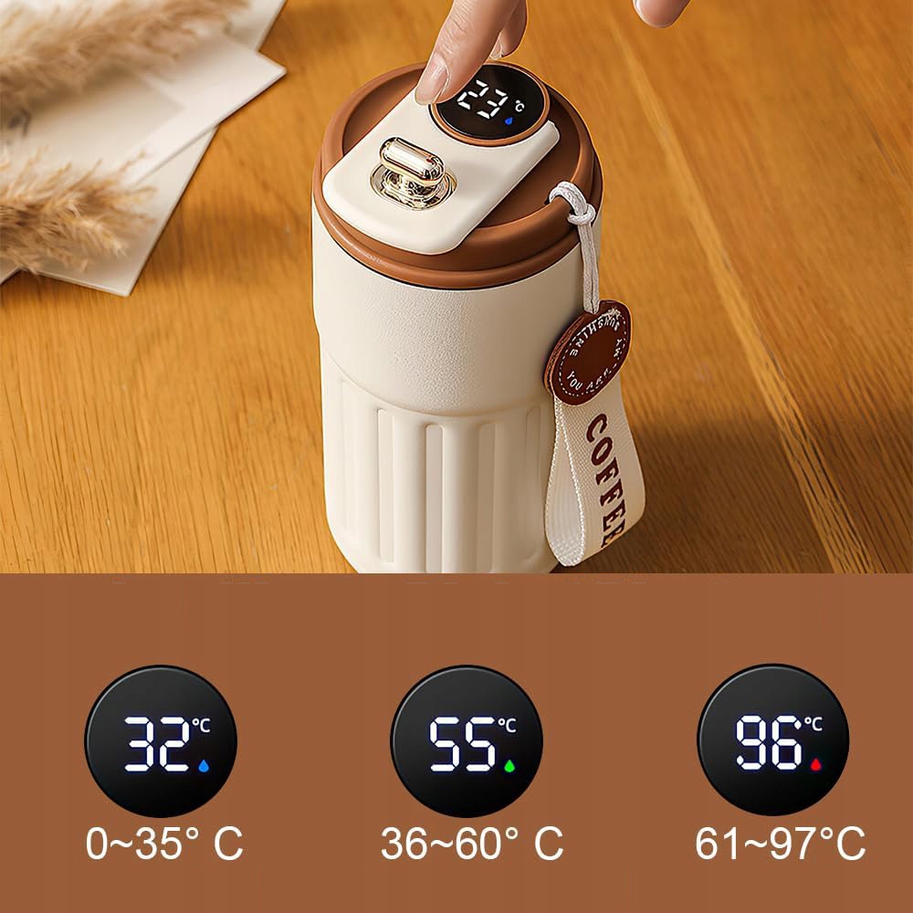 ТЕРМОКРУЖКА, ЖК-ДИСПЛЕЙ ТЕМПЕРАТУРЫ, 410мл, ДЛЯ КОФЕ, ЧАЯ, ТЕРМОСА