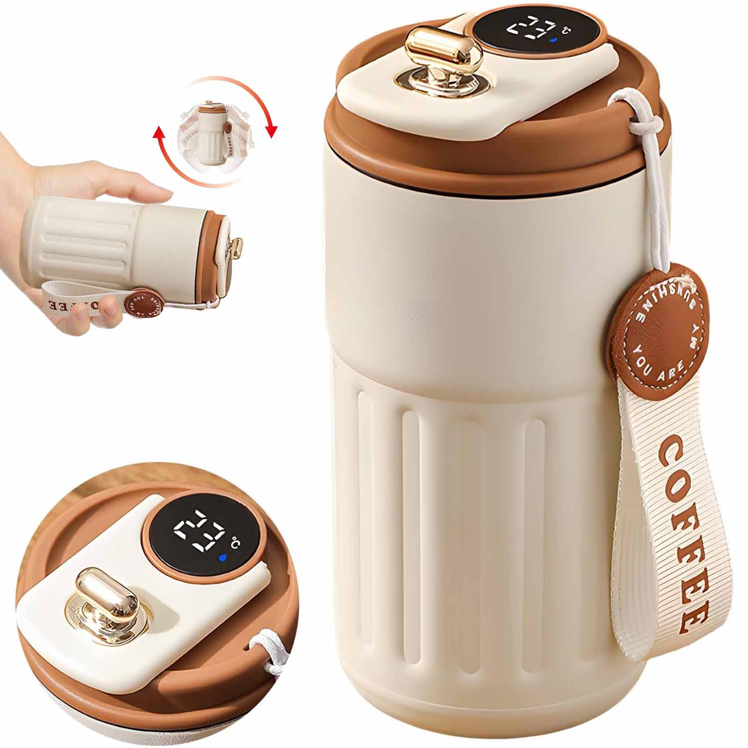 👍【Дисплей температуры】В отличие от обычных термокружек, крышки наших термокружек для кофе имеют температурный дисплей, который показывает текущую температуру кофе, поэтому вы можете легко контролировать температуру и наслаждаться кофе при оптимальной температуре питья.