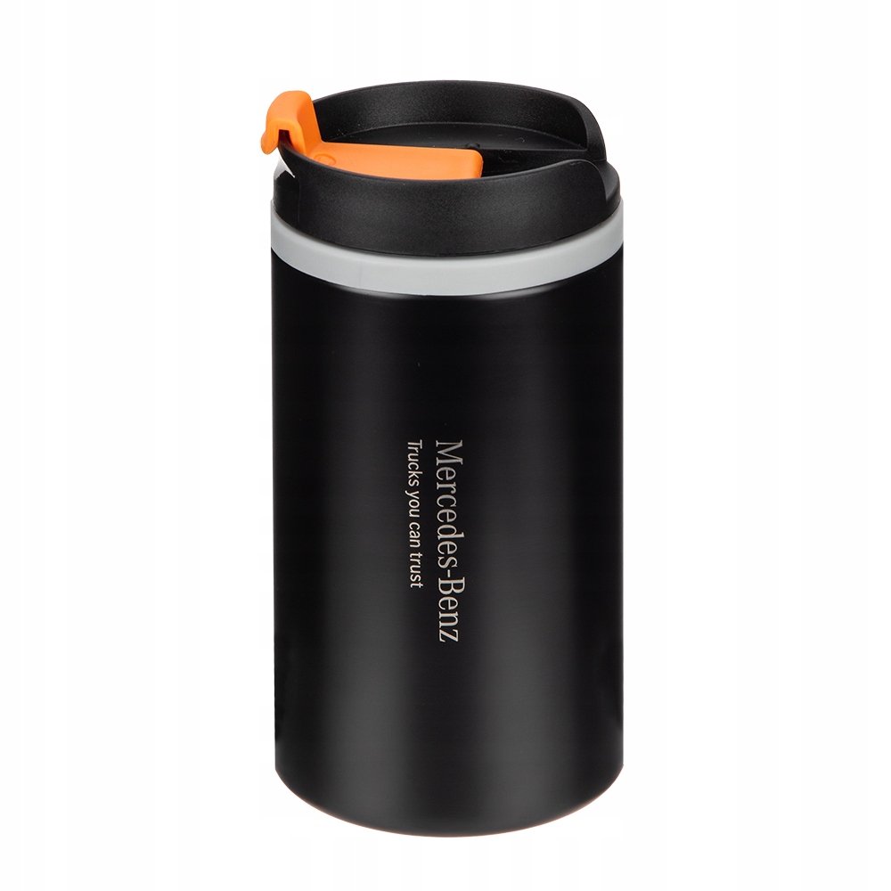 Эта термокружка из нержавеющей стали идеально подходит для горячих напитков. Благодаря своим компактным размерам он идеально подходит для легковых и грузовых автомобилей. На одной стороне изображена звезда Mercedes-Benz Trucks, а на другой — логотип.